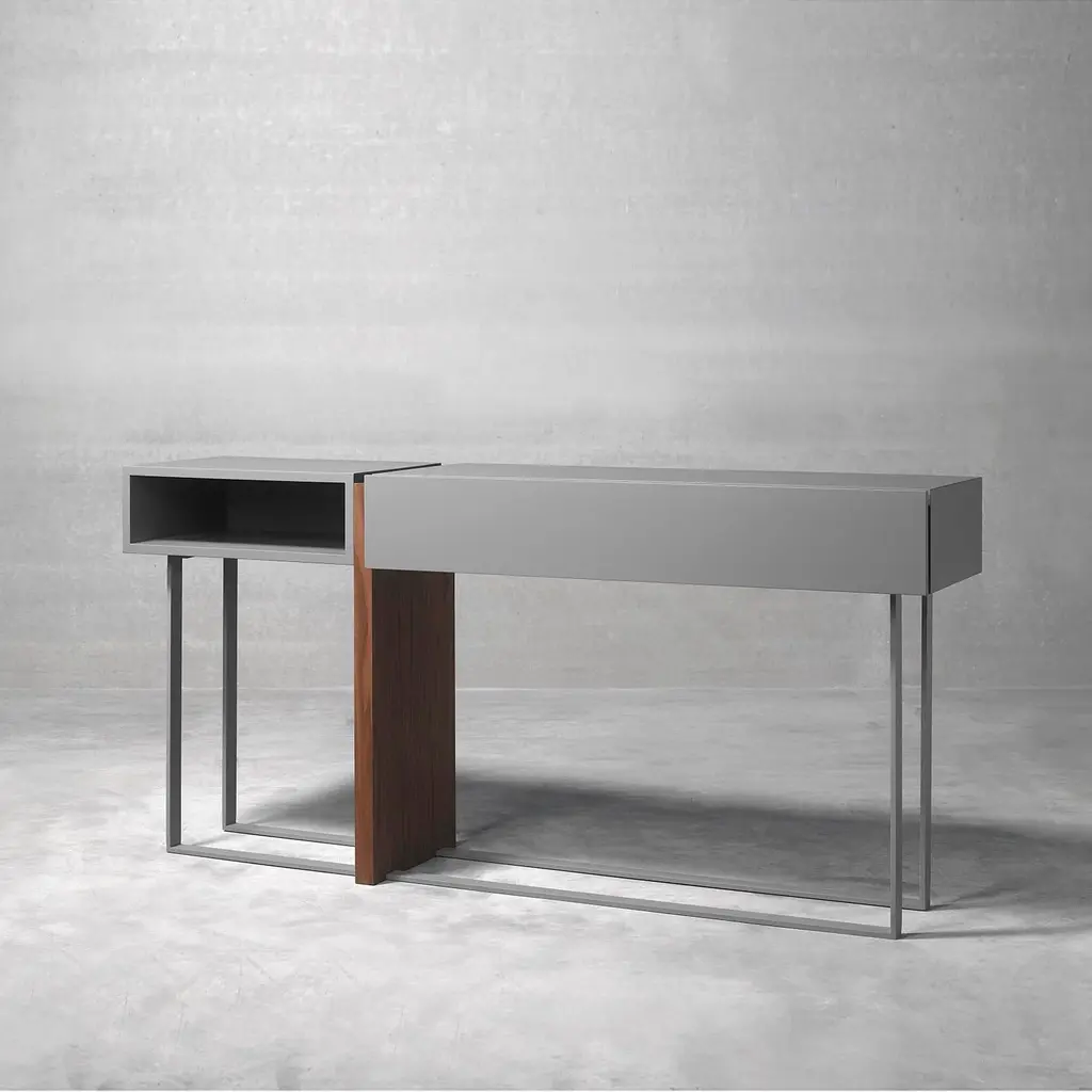- Cnsole with a textured base and matt lacquer finish - With wooden drawers - This line of tables and consoles are designed to meet the needs of the most avant-garde consumer - It preserves the firm's unmistakable seal of quality Signed by Maker,Labeled by Maker,Signed by Maker,Labeled by Maker
