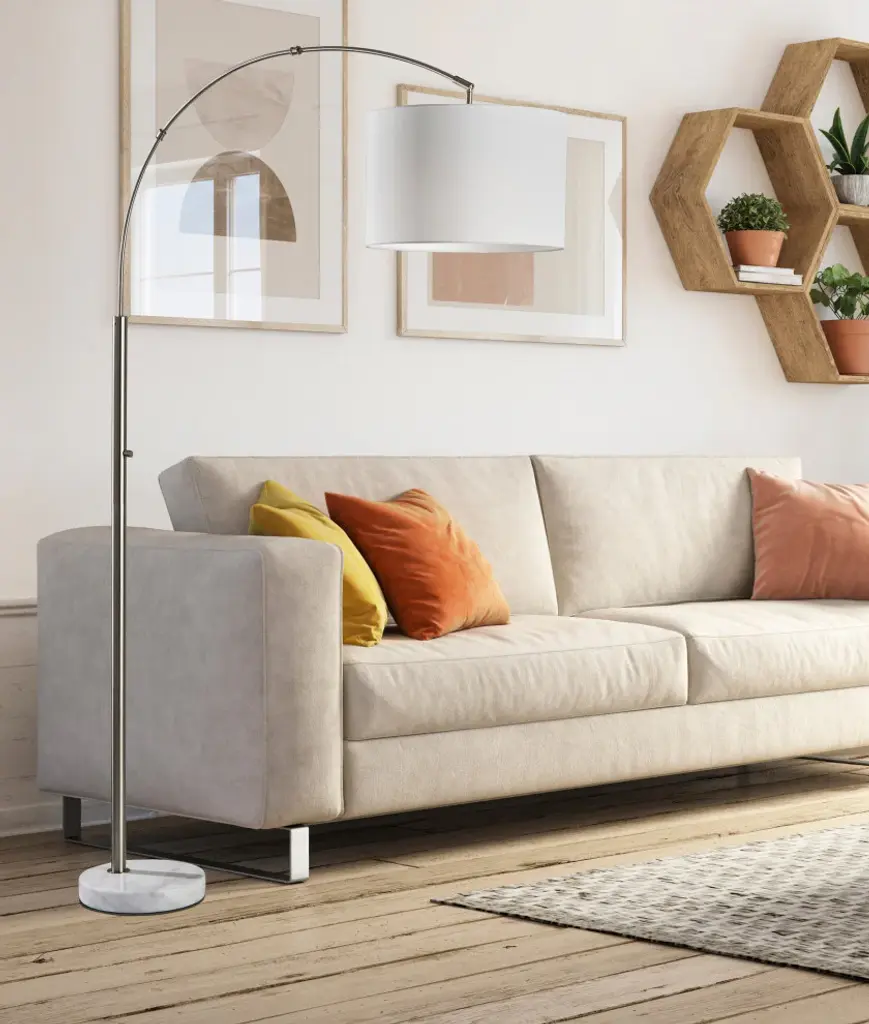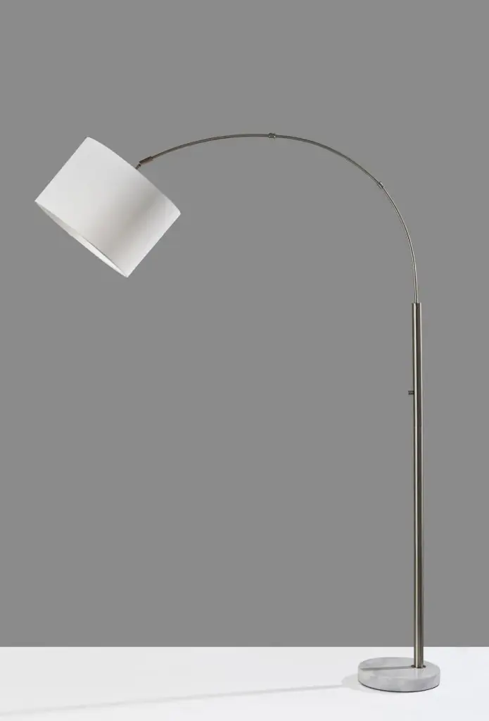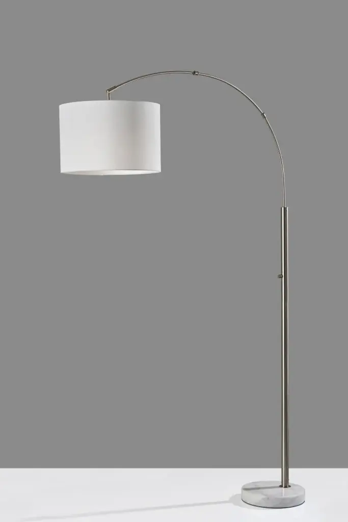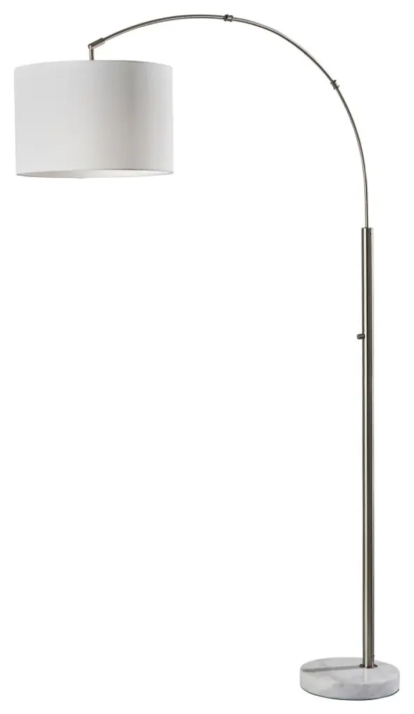 Introducing the SL1186-22 Rigley Arc Lamp, a stunning combination of modern design and practical functionality. This lamp boasts a brushed steel finish that exudes contemporary elegance and complements any decor style. It stands tall on a sturdy white marble base, which not only adds stability but also lends a touch of luxury to your living space. Topped with a chic white linen fabric shade, the Rigley Arc Lamp diffuses a warm and inviting glow, creating an inviting ambiance. The on/off rotary switch on the lamp''s tube provides effortless control, allowing you to adjust the lighting to suit your mood. With a towering height of 71 inches and an impressive reach of 50 inches, this arc lamp is a versatile lighting solution that can be positioned to illuminate various areas in your room. Elevate your home''s lighting and aesthetic with the Rigley Arc Lamp.Contemporary Elegance: The Rigley Arc Lamp features a sleek brushed steel finish that adds a touch of modern sophistication to your home decor.Luxurious Stability: Its white marble base not only enhances stability but also introduces a touch of luxury to your living space.Chic Illumination: The white linen fabric shade diffuses light softly, creating an inviting and chic atmosphere in any room.Effortless Control: The on/off rotary switch on the lamp''s tube allows you to easily adjust the lighting to your preference, enhancing convenience.Impressive Reach: With a towering 71-inch height and a 50-inch reach, this arc lamp can illuminate various areas, making it a versatile and practical lighting solution.