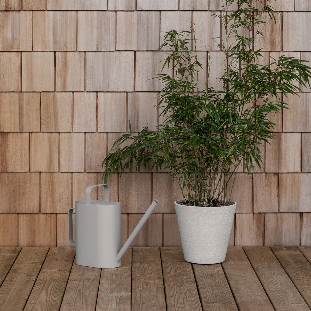 Elegant minimalism meets functionality in this gardening essential from the Blomus collection. The Blomus Rigua minimalist watering can looks like a stylish decorative object, but it’s made with convenience in mind. It features two handles, one at the top and one on the side, to make watering plants as easy as possible. The larger capacity of 1.3 gallon or 5 liters also provides a practical way to water more plants. Made from high-quality stainless steel, this minimalist watering can has a durable lacquered finish that resists rust. Like other Blomus products, Rigua comes in versatile, neutral colors to look great in any space.