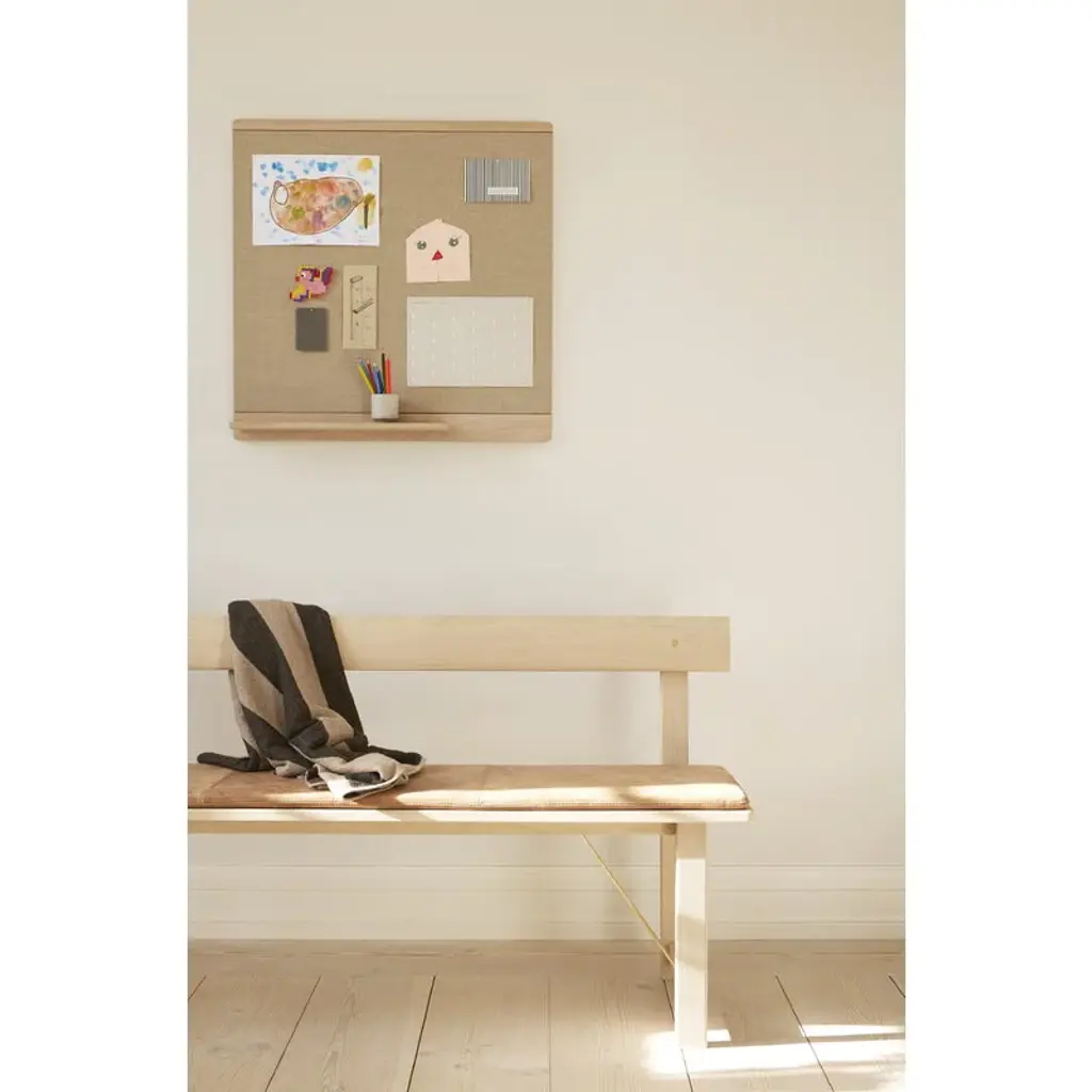 Form & Refine's Rim pinboard is designed to look as if floating slightly off the wall. Designed by Herman Studio, the pinboard boasts a clean-lined, minimalist expression that is softened by the combination of wood and cotton canvas, the naturalness of which brings serenity and gentleness to the space. The classic, sleek memo board is equipped with a small shelf for accessories and small objects – the groove at the front of the shelf keeps the items securely in place.