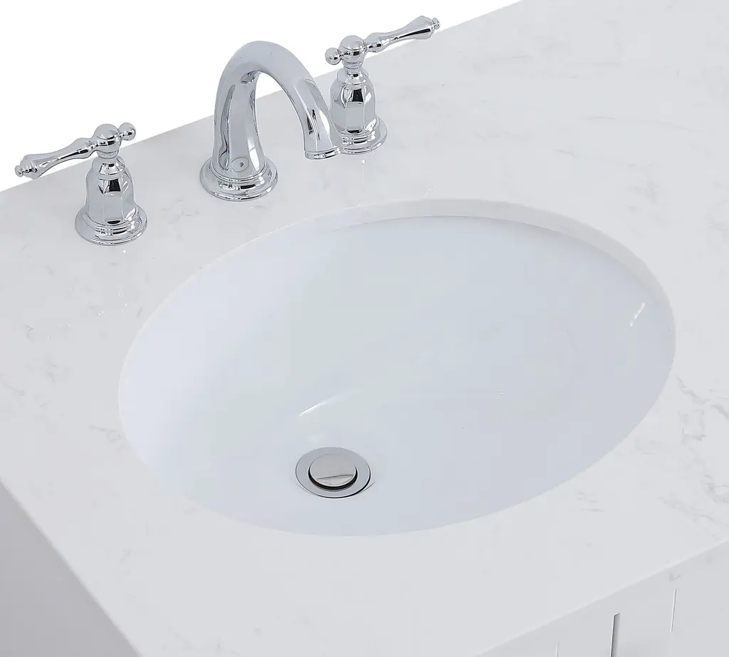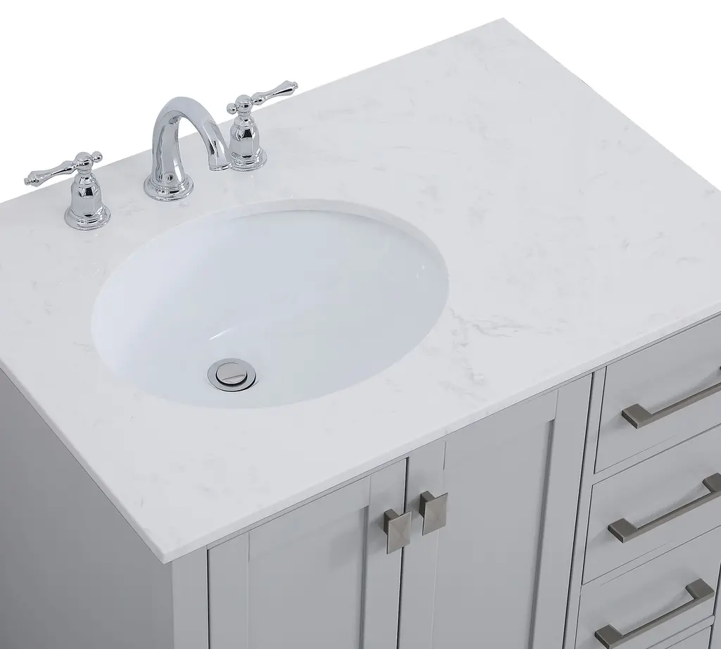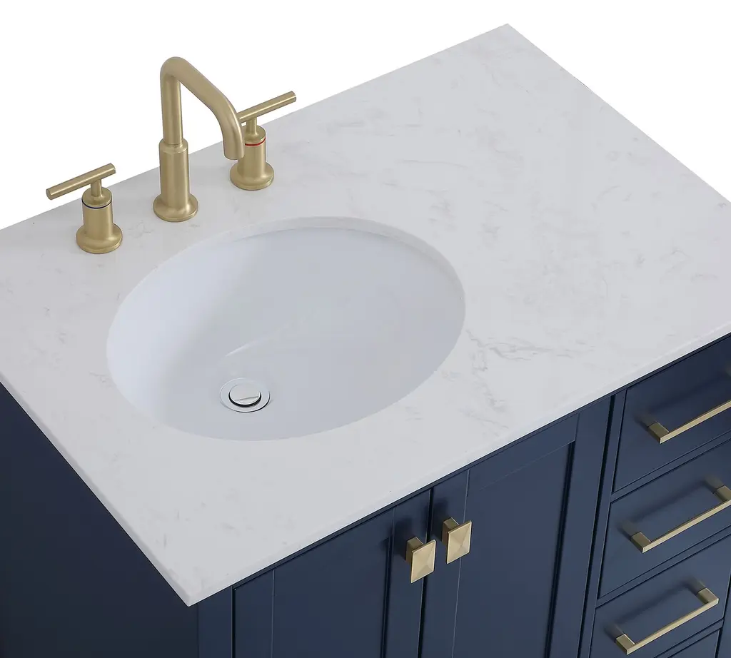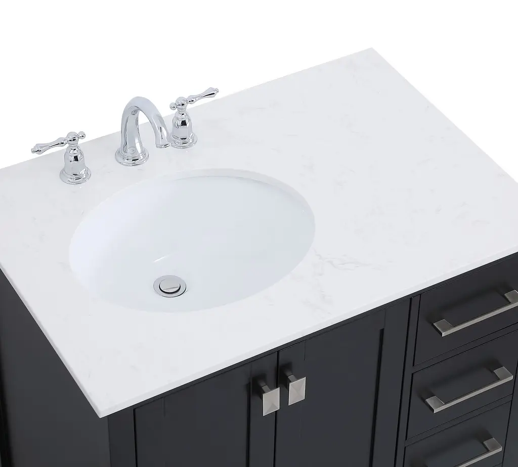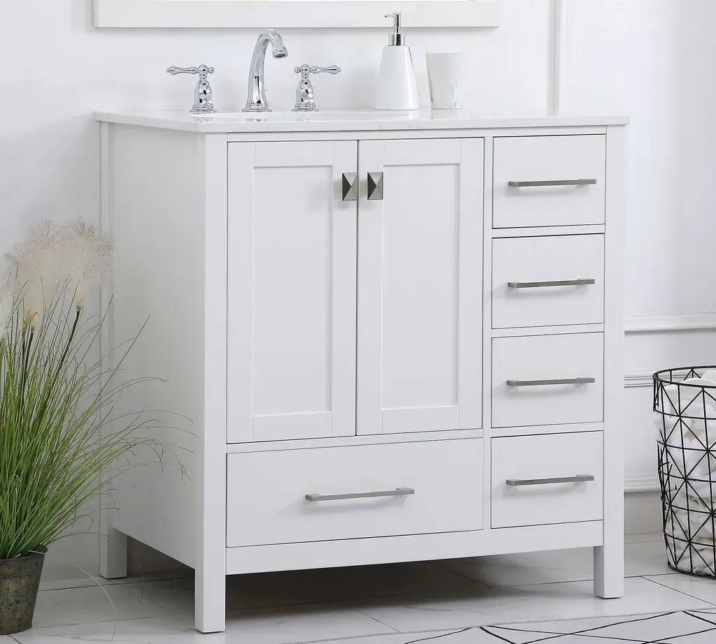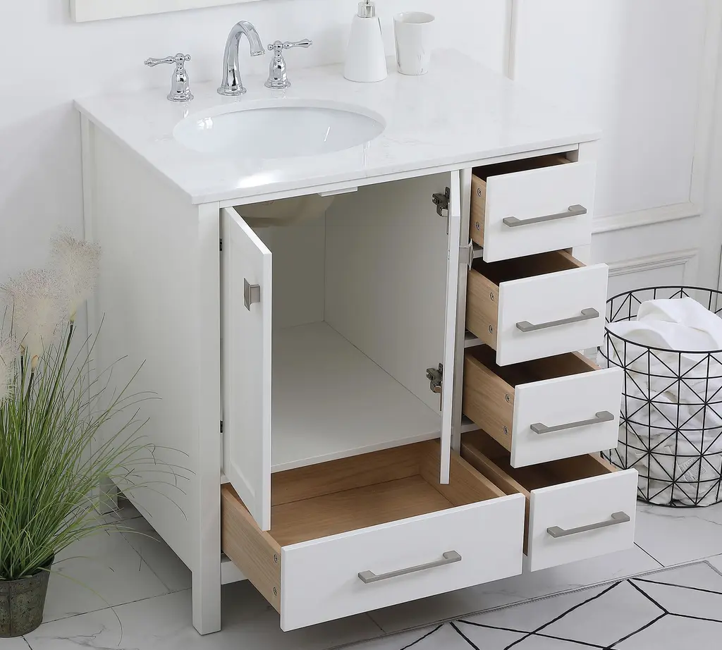 Elegant and classic, this vanity adds spa-worthy luxury to your bath. Topped with engineered marble and finished with refined hardware, it features five drawers to stylishly store all your bath supplies.