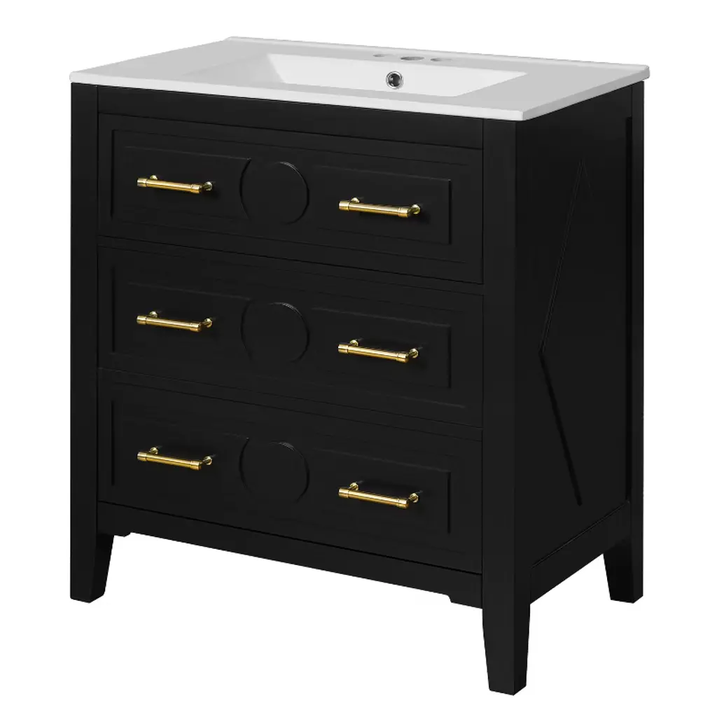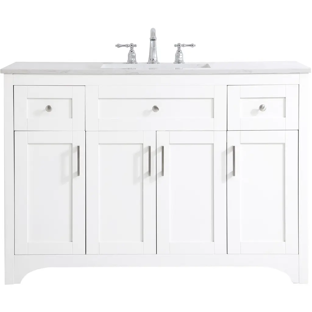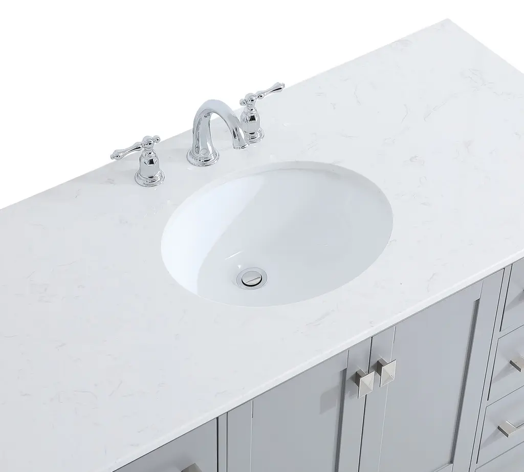 Elegant and classic, this vanity adds spa-worthy luxury to your bath. Topped with engineered marble and finished with refined hardware, it features nine drawers to stylishly store all your bath supplies.