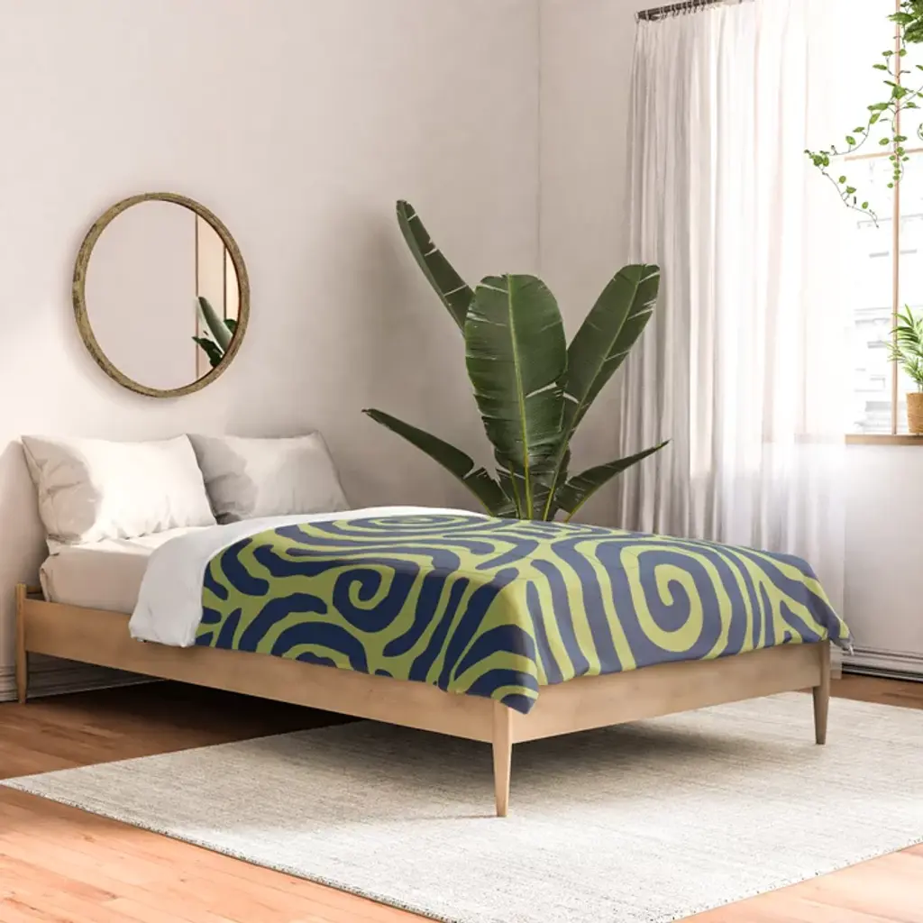 Ripple Effect Pattern Blue And Chartreuse Comforter