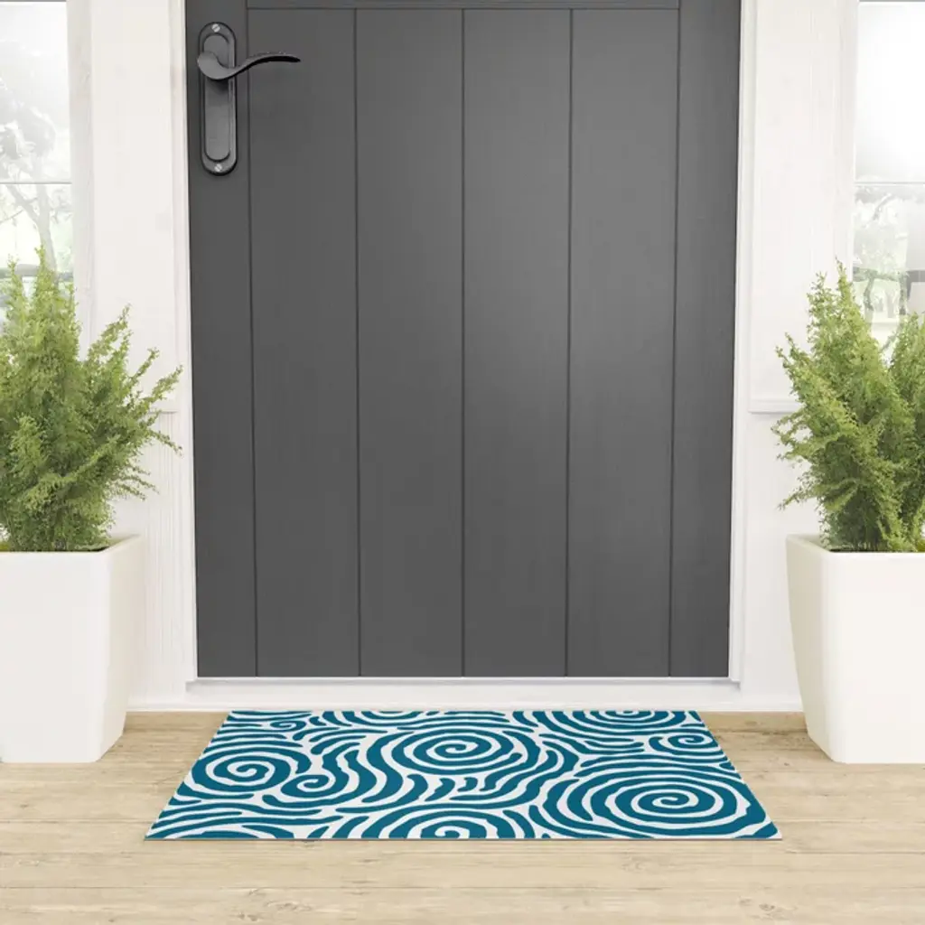 Ripple Effect Pattern Peacock Blue Welcome Mat