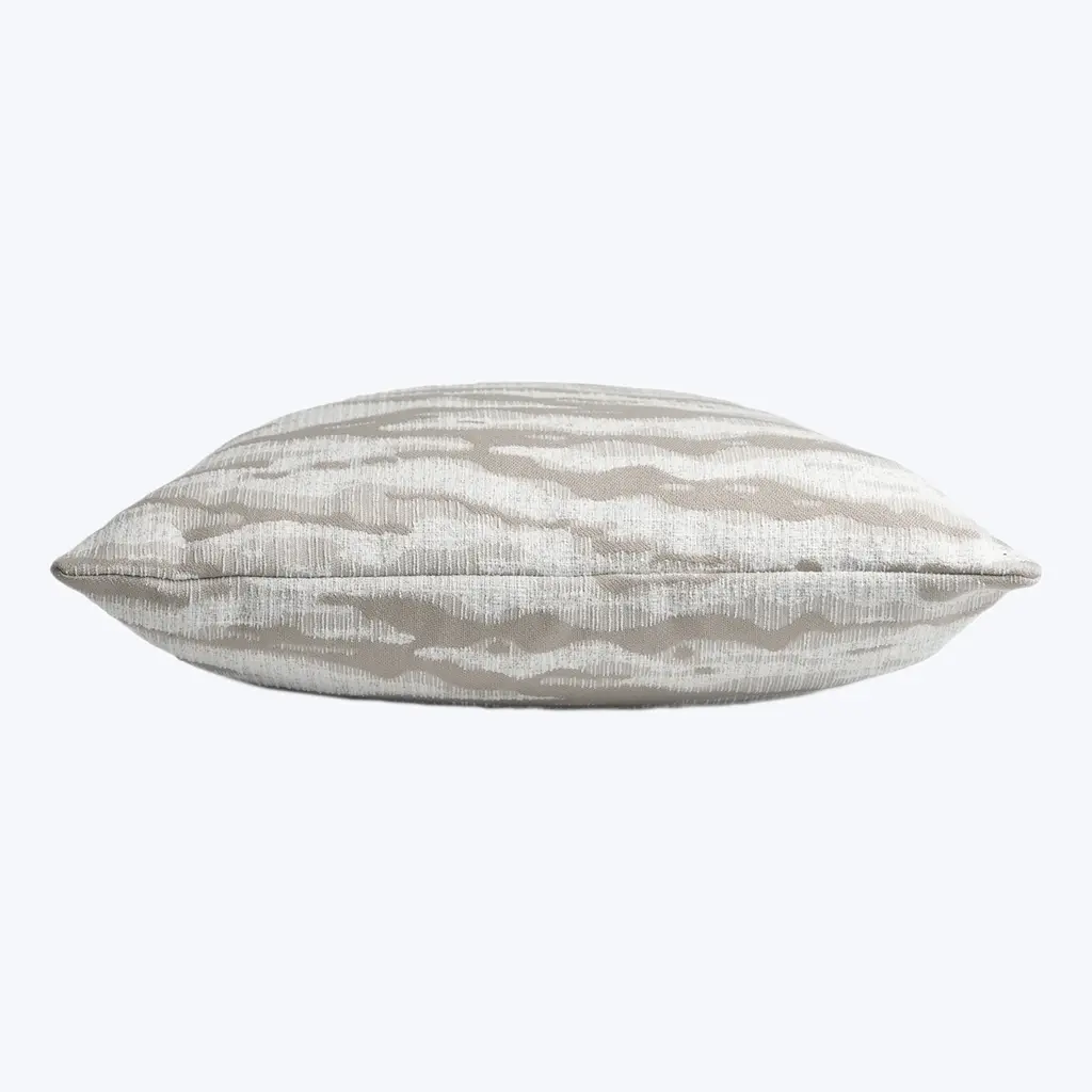Inspired by flowing water, the Ripple Performance Pillow Pebble by Kevin O’Brien Studio features a soothing, naturalistic pattern, equally suited for indoor and outdoor display. This sophisticated pillow is handcrafted in the USA in weather-resistant performance fabric. A refined addition to understated living spaces. See also the lumbar edition.