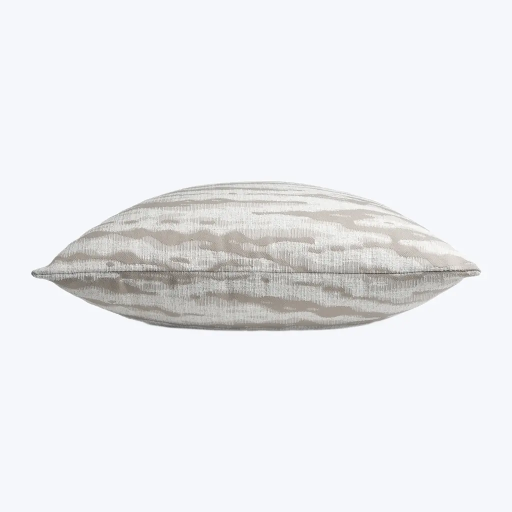 Inspired by flowing water, the Ripple Performance Pillow Pebble by Kevin O’Brien Studio features a soothing, naturalistic pattern, equally suited for indoor and outdoor display. This sophisticated pillow is handcrafted in the USA in weather-resistant performance fabric. A refined addition to understated living spaces. See also the lumbar edition.