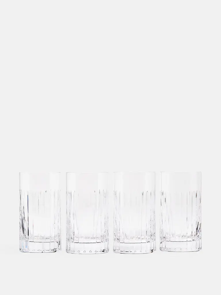 Inspired by small, delicate glasses traditionally used in French cuisine to serve little appetizers and desserts, this set of four mouth-blown glasses have a rippled surface that is distinctive to the series. Each glass can also be used as a lid for the Ripple Carafe and make an elegant addition to the Ripple collection at your table setting.