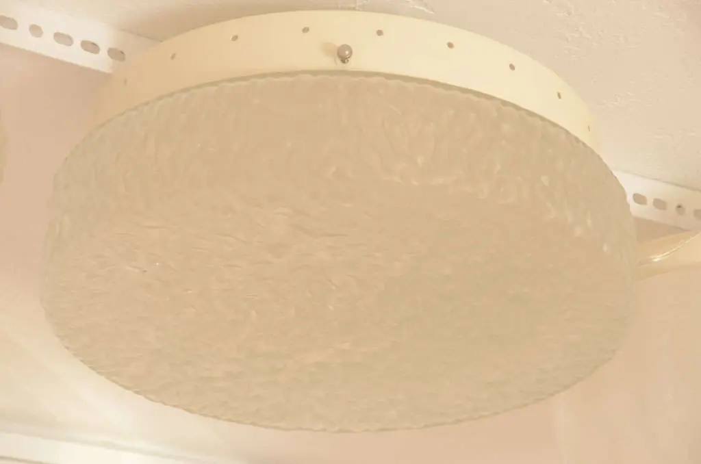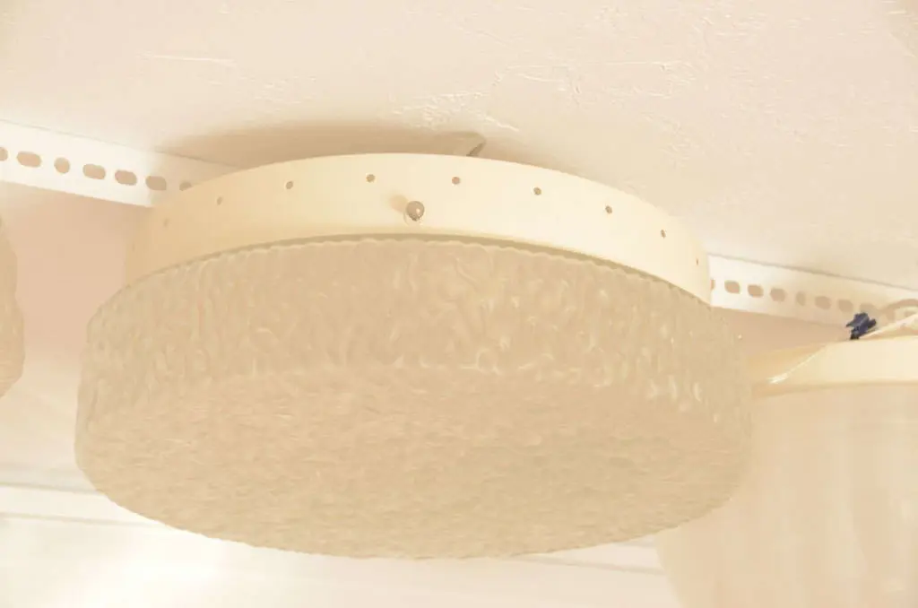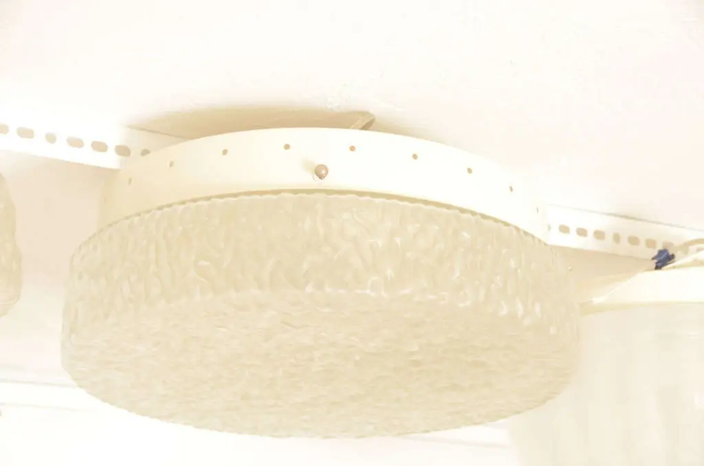 Rippled textured glass ceiling fixture with an opaque finish.