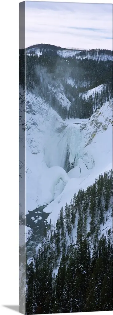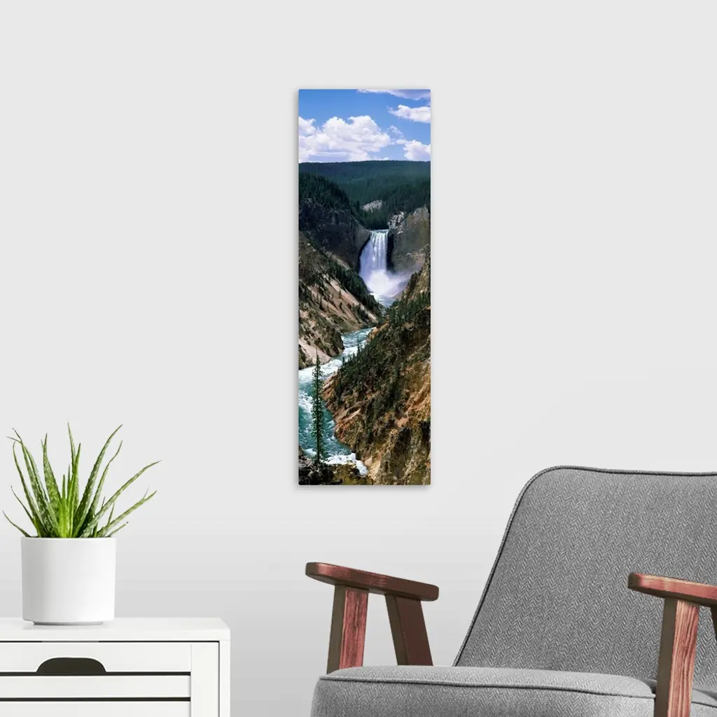 Vertical panoramic of a large waterfall at Yellowstone National Park in Wyoming.