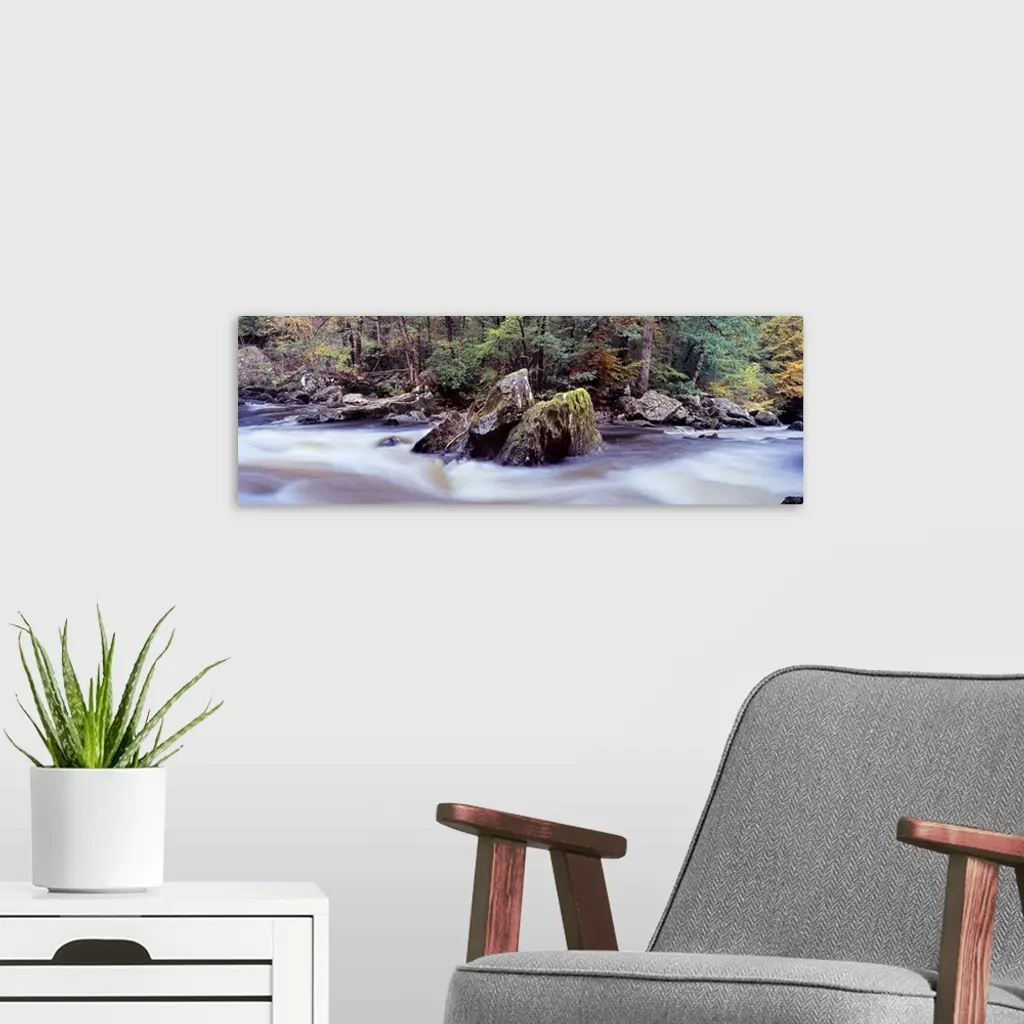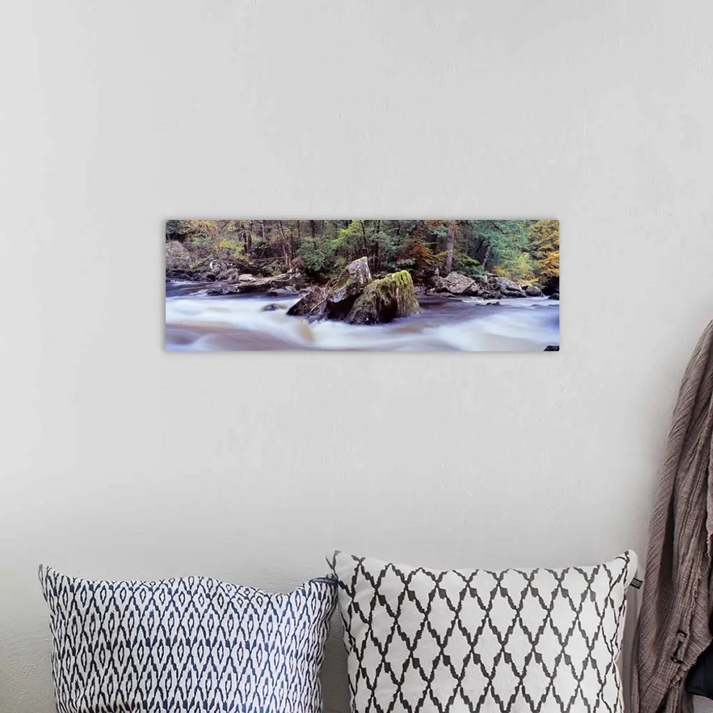 River flowing through a forest River Braan The Hermitage Dunkeld Perth and Kinross Scotland wall art for home and office decor. Discover canvas art prints, photos, mural, big canvas art and framed wall art in GreatBigCanvas.com's varied collections.
