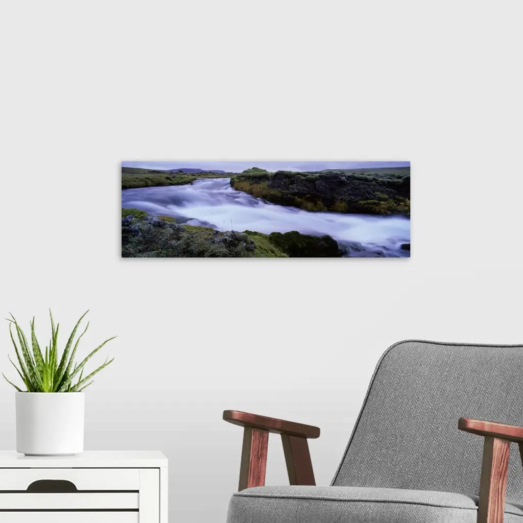 River flowing through a landscape, Fjallabak Nature Reserve, Central Highlands, Iceland wall art for home and office decor. Discover canvas art prints, photos, mural, big canvas art and framed wall art in GreatBigCanvas.com's varied collections.