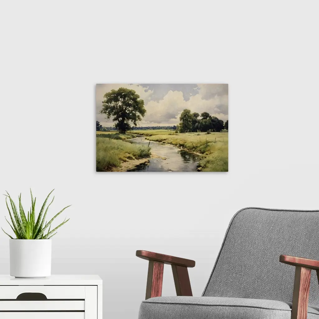 South Downs in West Sussex, England. Oak trees and distant views across the English countryside.