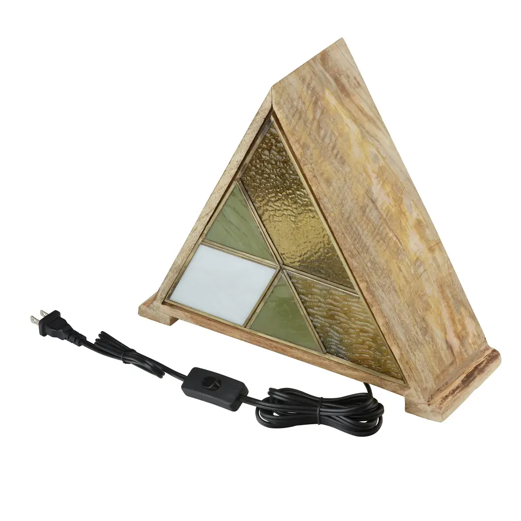 River Of Goods Wood And Stained Glass Triangle Shade 11-Inch Accent Lamp - 13.5" X 4.5" X 11" - 13.5" X 4.5" X 11" - Amber/green/white/gold/tan