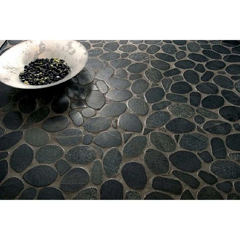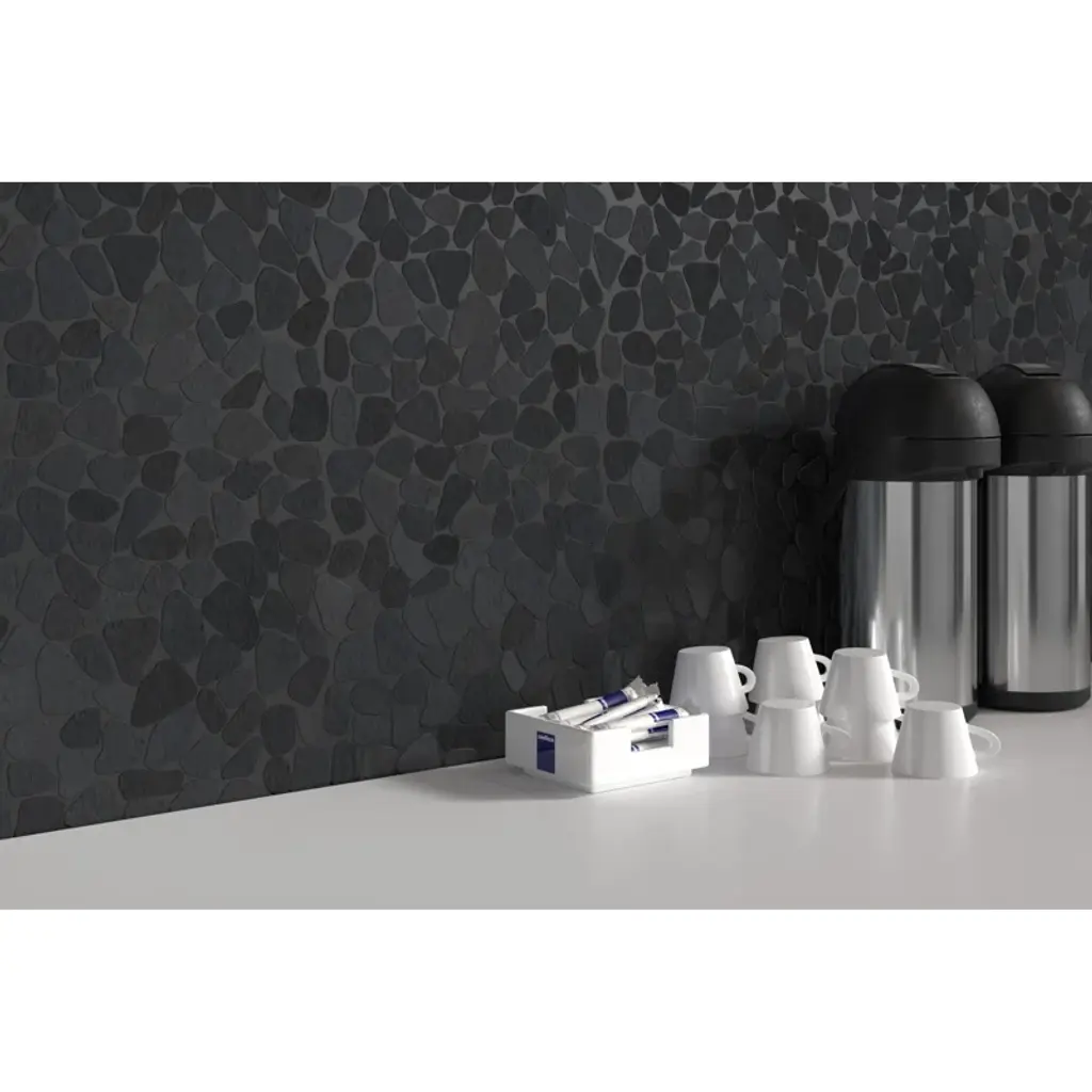 Rivera Pebbles™ recalls the burnished stones that grace the famous beaches along the french riviera. Available on interlocking mesh, Rivera Pebbles™ brings a relaxed harmony to interior spaces.