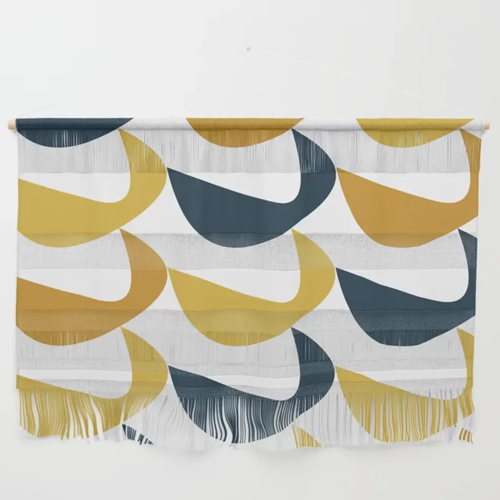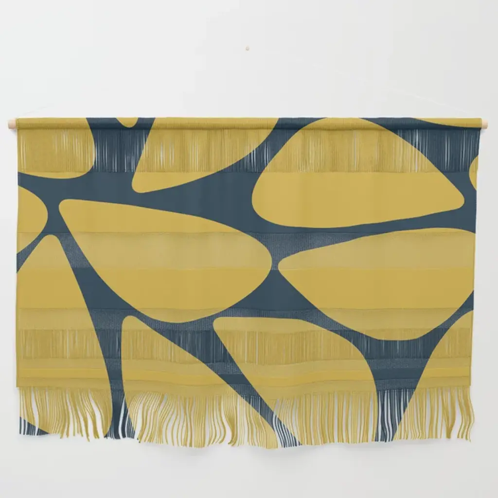 Riverbed Stones Minimalist Abstract Pattern In Light Mustard Yellow And Navy Blue Wall Hanging