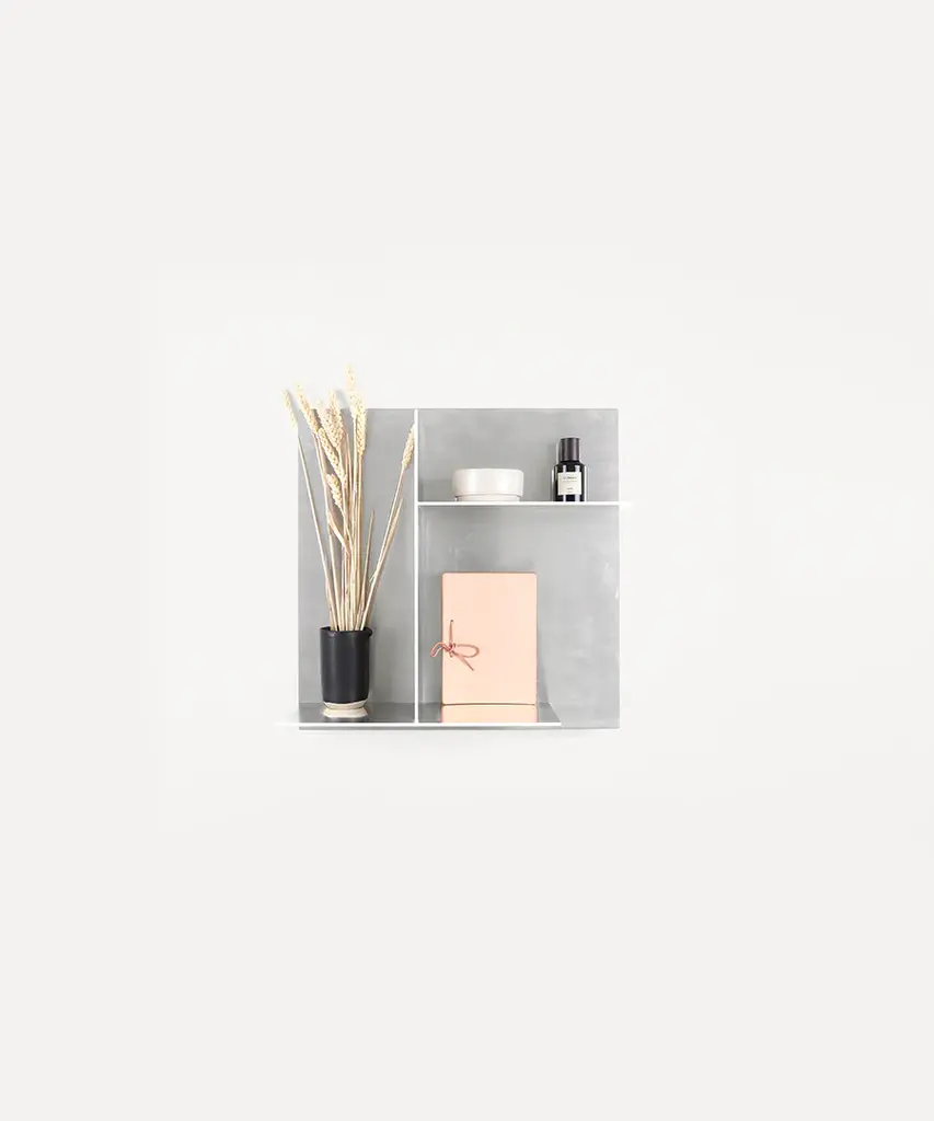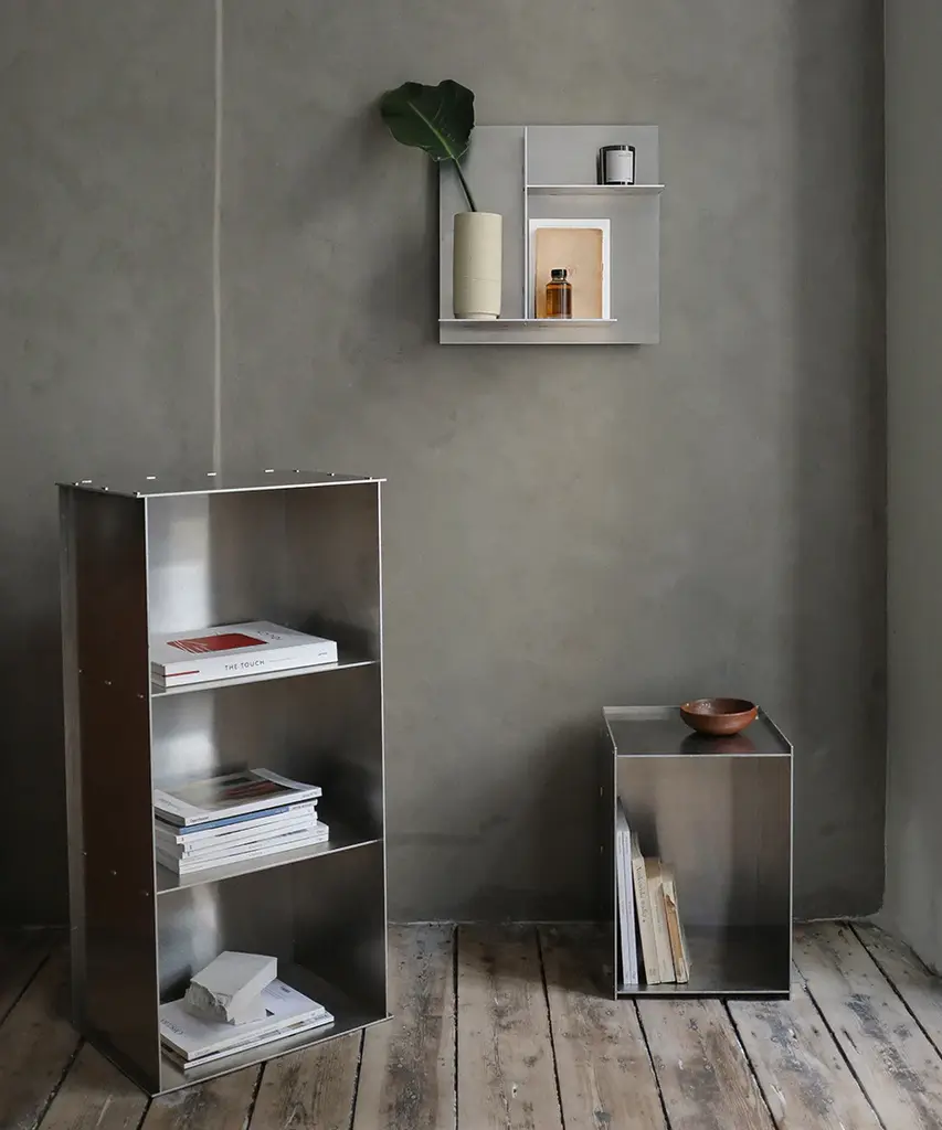 Rivet Typecase is a compartmentalized aluminum shelf with discrete sections meant for storing and displaying your most cherished objects. Based on a riveting technique suitable for making perpendicular joints between separate, laser-cut raw aluminum sheets, the item is put together by hand using a hammer in a cold-forming assembly process developed by designer Jonas Trampedach in 2011. Designed by Jonas Trampedach for Frama - an interior and product design studio based in Copenhagen. The studio is a dynamic testing ground for new designs and projects, embodying their classical, yet boundary-pushing approach.
