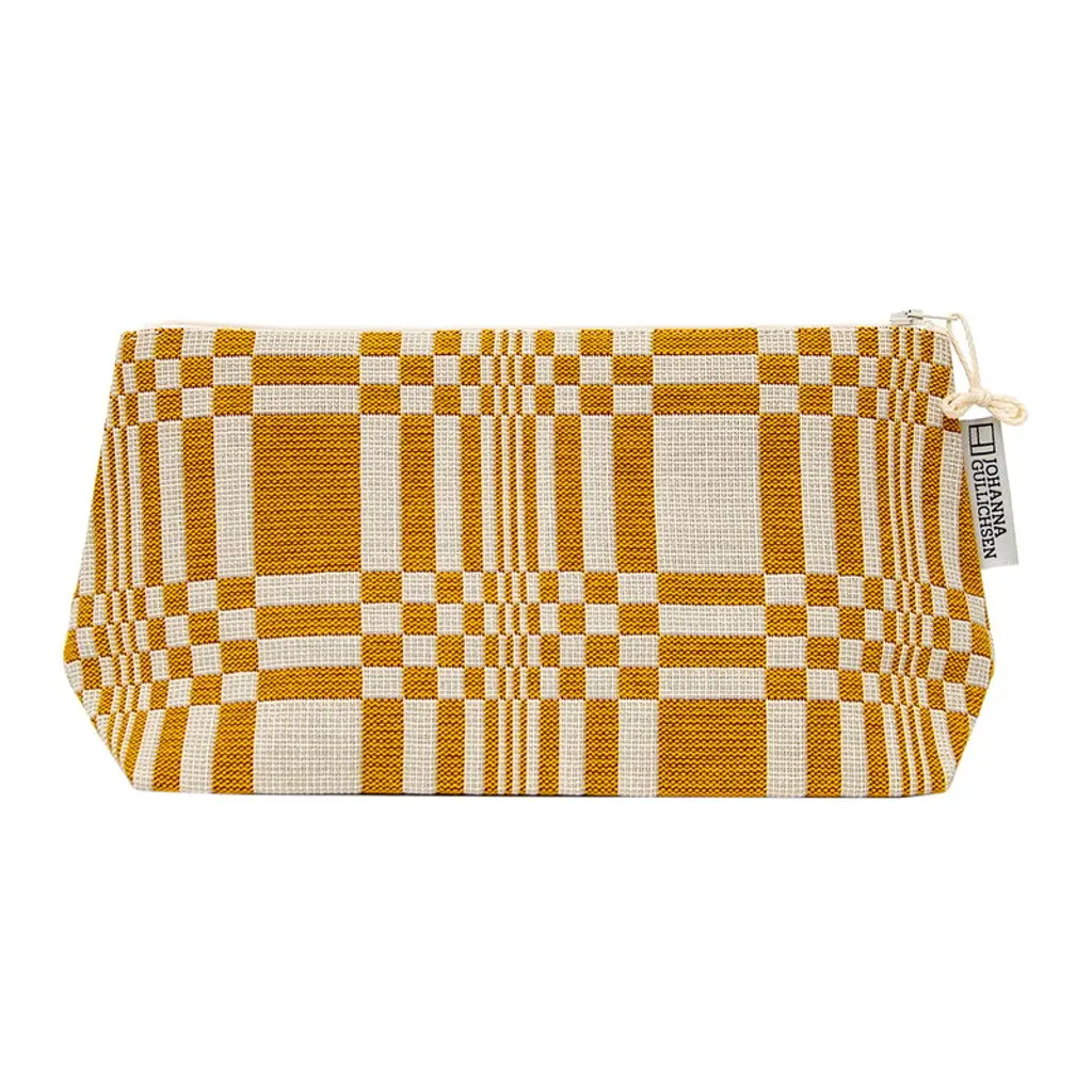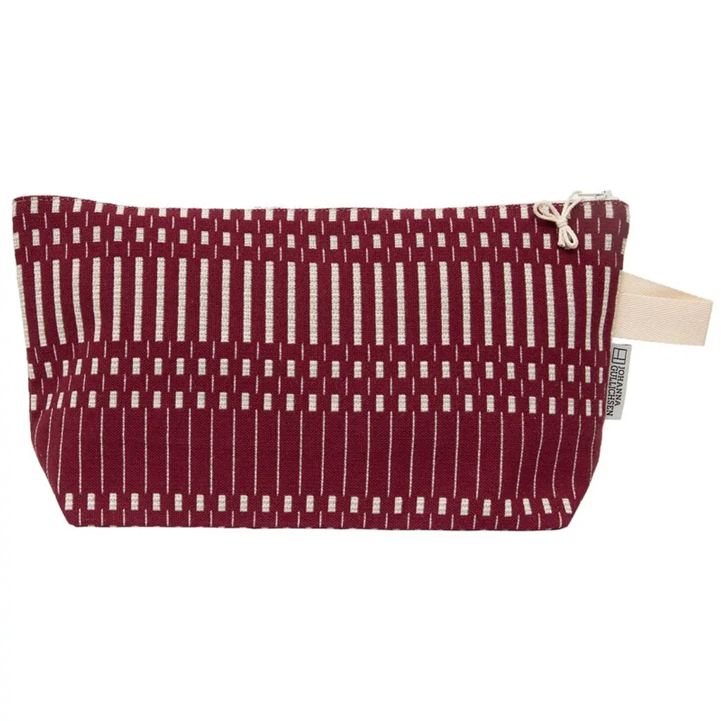 The Rivi pouch, designed by Ronan and Erwan Bouroullec for Artek, features a unique textile pattern that comprises rows of long, parallel lines with delicate details. The pouch is made of strong canvas cotton fabric and has a zipper opening. The appeal of Rivi, Finnish for "line", lies in the hand-drawn lines – Artek has a long tradition in crafting furniture from wood and perceives organic irregularity as a virtue rather than as a flaw. The Rivi home collection includes fabrics, cushion covers, trays, pouches and bags in a range of Nordic colors.