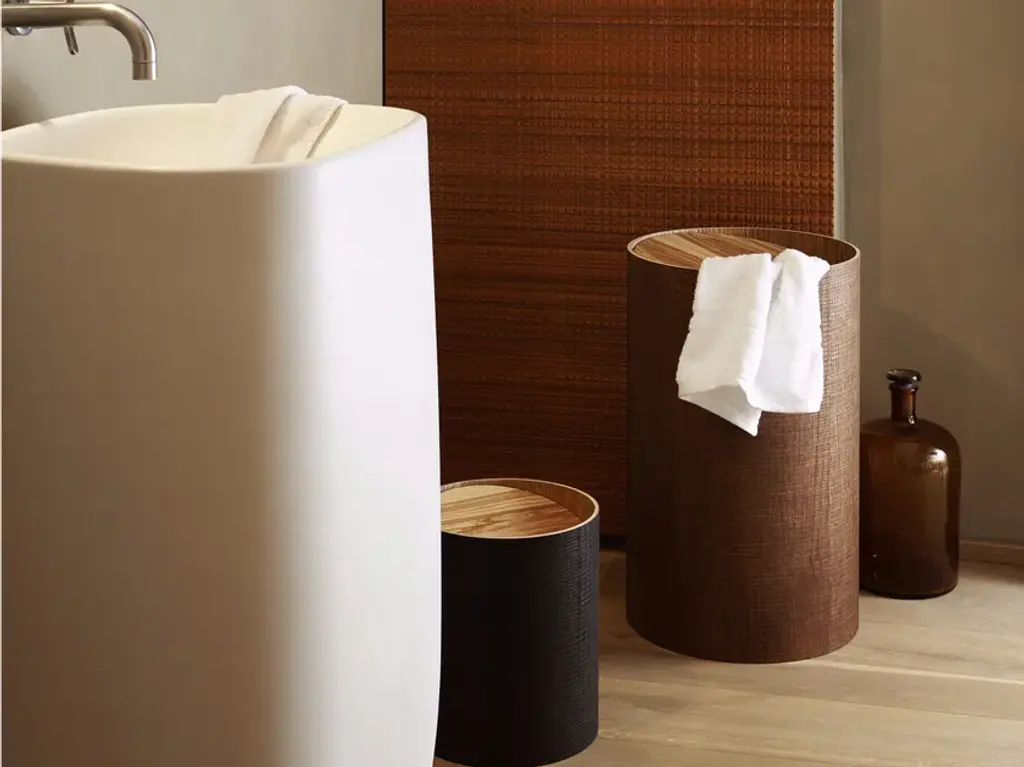 Laundry holder. Beechwood outer layer, ash-wood inner,lacquered.