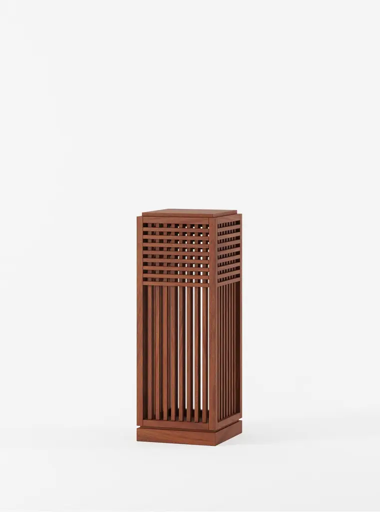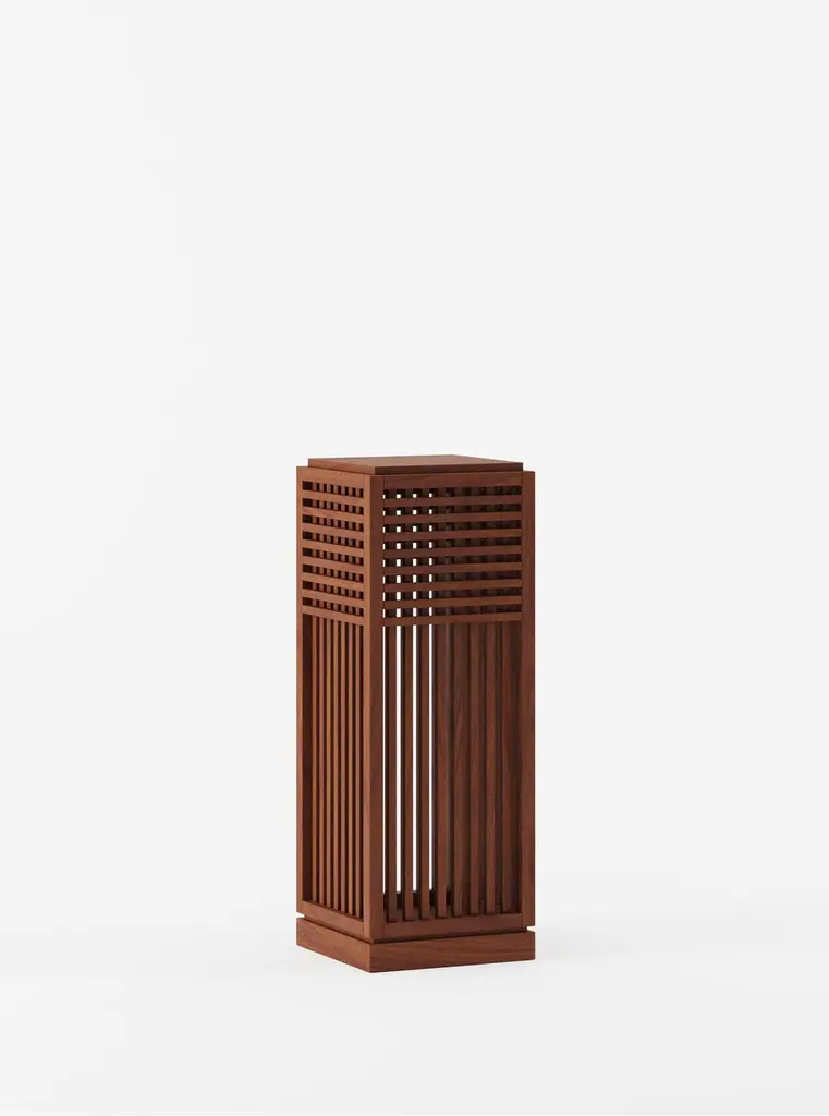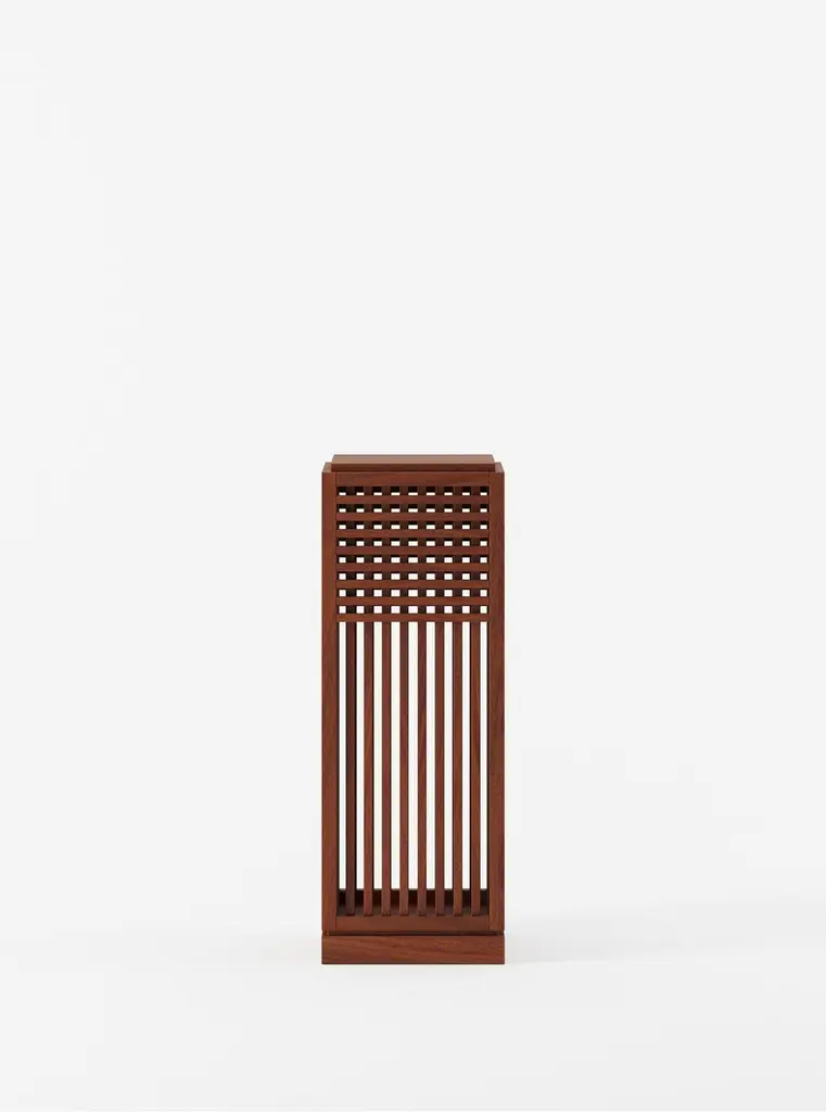Yaniv Chen, the designer behind the Riviera Plinths for Lemon, draws inspiration from a childhood memory and a lifelong fascination with lattice patterns. Exploring conservatories as a child and collecting works by renowned artists Charles Rennie Mackintosh and Cecil Beaton in his conservatory, Yaniv fell in love with the intersecting timber pieces. This love led to the creation of the Riviera Plinths. The humble plinth is an easy thing to place in the home, and the lattice allows light through, minimizing interruptions to the interior. It feels like owning a small moment in decorative history paired with childhood nostalgia. Crafted from African Mahogany, the plinths evoke the beams of historical Victorian and Edwardian homes in Cape Town. Yaniv's practice revolves around a deep connection to the past, manifested in this homage to decorative history.