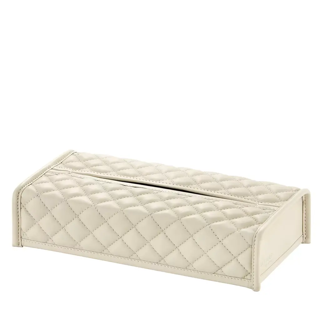 A touch of couture for a household essential, the Elba Diamonds Tissue Holder is a glamorous design from the Giobagnara and Riviere collaboration. Expertly handcrafted in Italy, this piece is meticulously wrapped in soft, padded leather stitched into a timeless quilted diamond pattern. The wonderfully tactile form elegantly conceals a standard tissue box, bringing an unmistakable touch of sophisticated style. A fusion of high-fashion texture and everyday function, it’s an exquisite finishing touch for any glamorous interior space. Highlights: