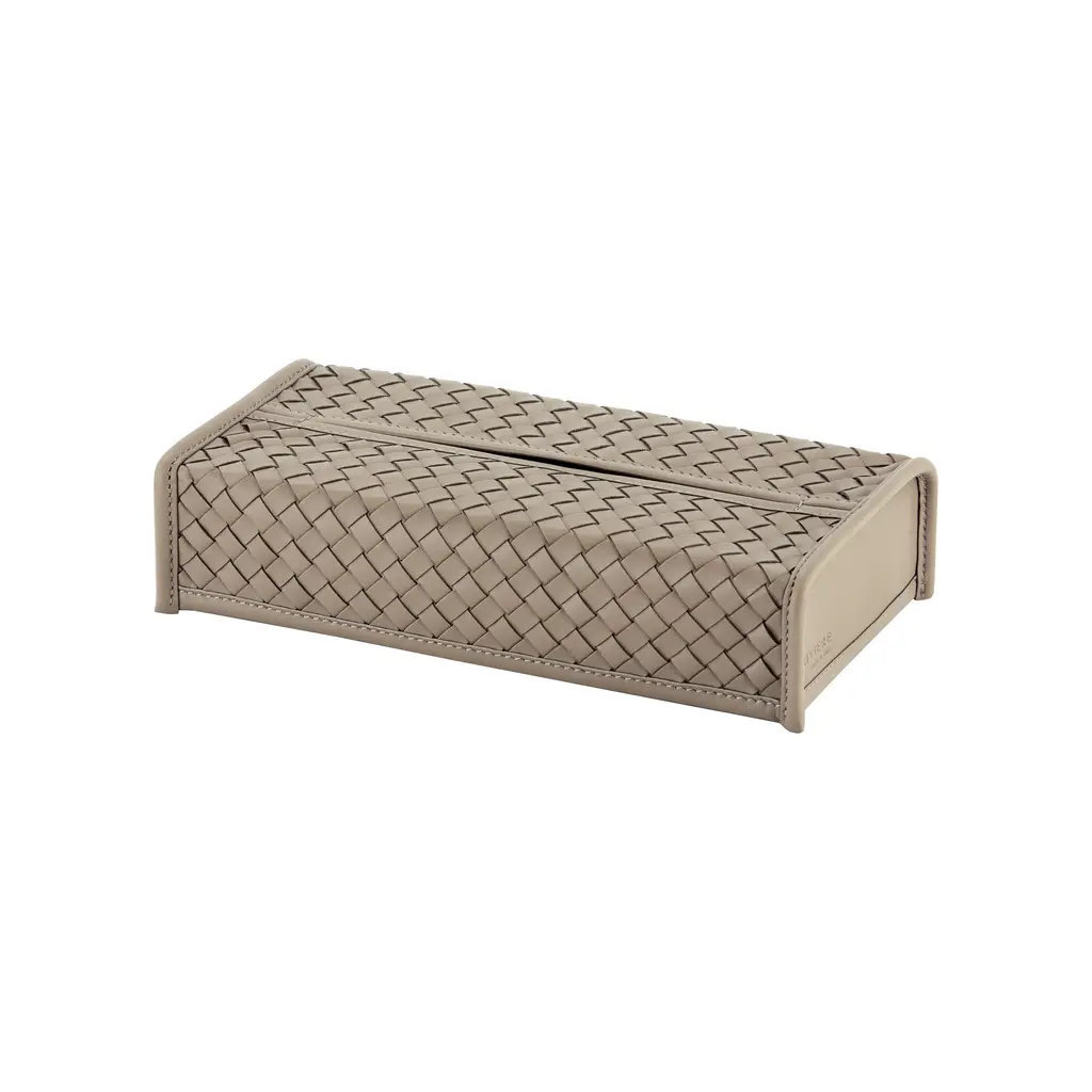 A masterpiece of handcrafted texture, the Giobagnara x Riviere Elba Handwoven Tissue Holder is a refined and sophisticated design. Expertly woven in Italy, its entire surface is meticulously handwoven from fine leather, creating a rich, textural object that is both stunning and durable. This beautifully rendered form elegantly conceals a standard tissue box, bringing an unmistakable touch of sophisticated style. It’s a perfect fusion of heritage craft and contemporary elegance for any well-appointed space. Highlights: