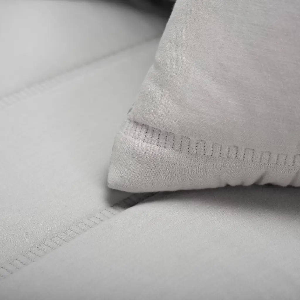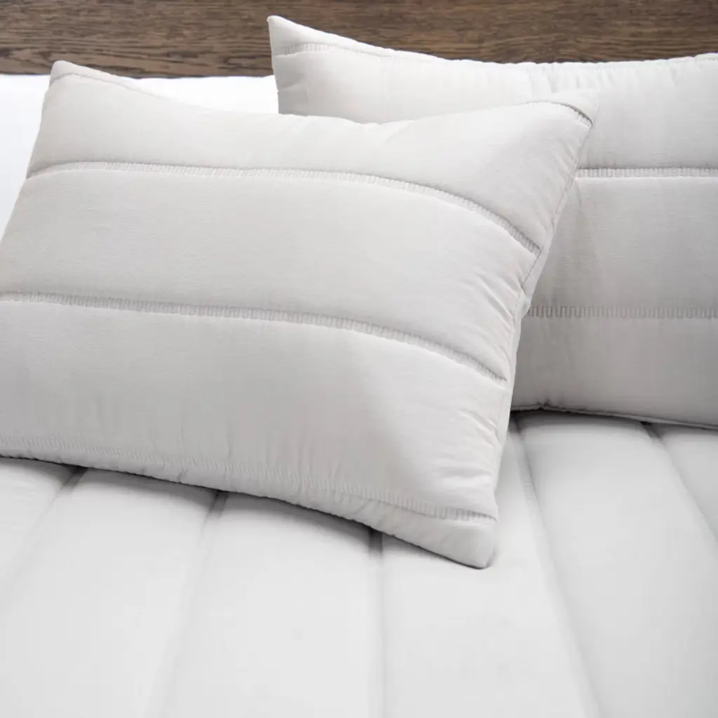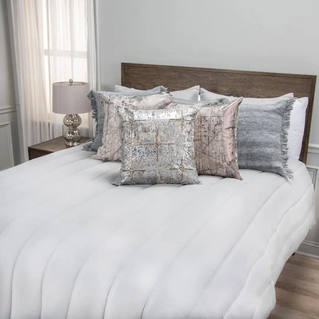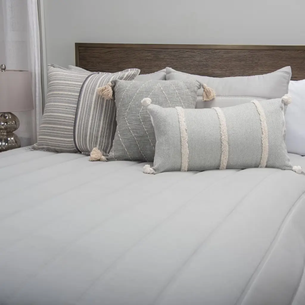 This gorgeous multi-seasonal channel stitched quilt from Blackberry Grove has a cozy farmhouse vibe blended with an industrial edge. Completed with two matelassé overlap closure shams, this queen bedding set is simply elegant in a medium weight that can be used all year round. The soft grey slate hue brings a calm serenity to any bedroom retreat in a neutral palette, so it can be easily layered with other elements and styles. In true functional elegance, this comforter alternative is machine washable for easy maintenance. Bring some alluring elegance to your bedding ensemble and linen collection with this warm and indulgent quilt set from Rizzy Home.
