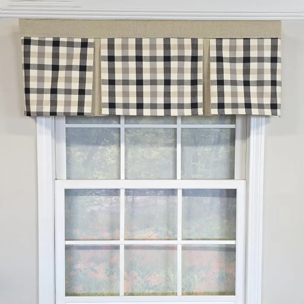 Rlf Home 100% Cotton Bison Check Pleated Unlined Windows Rod Pocket Valance 50" X 17" Black
