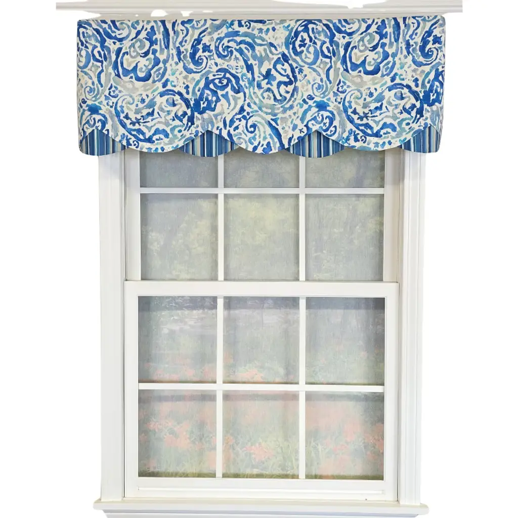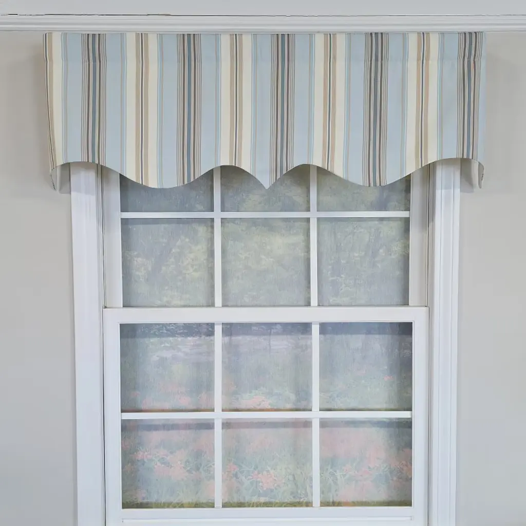 Rlf Home 100% Cotton Paris Stripe Regal Fully Lined Windows Rod Pocket Valance 50" X 17" Blue