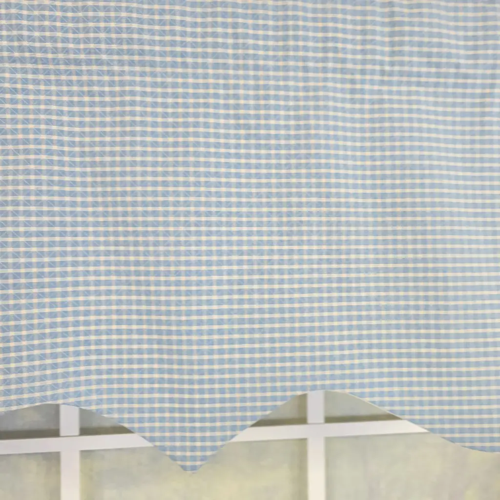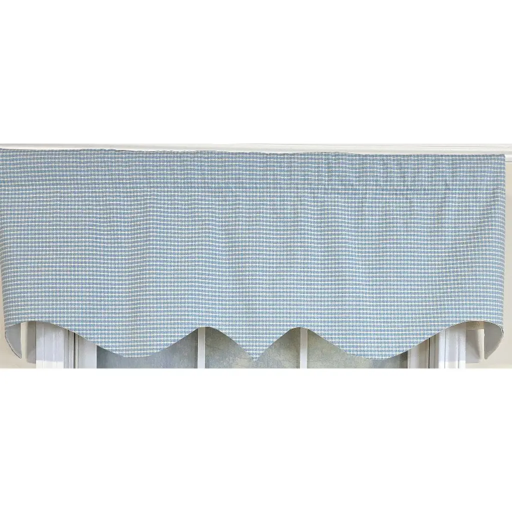 Bring classic charm to your window décor with the RLF Home Shepherd Check Regal valance made from high-end 100% cotton decorator fabric. Sized 50" wide and 17" Long, this fully lined blue valance fits windows up to 48" wide and features a timeless check pattern that adds tailored texture and refined style to any space. The ivory poly-cotton lining ensures lasting structure, graceful drape, and gentle light control while maintaining privacy. Easy to install on continental, curtain, tension, or decorative rods, this rod pocket valance delivers a designer finish in kitchens, bedrooms, dining rooms, or entryways. Use multiple units for wider spans. Spot clean to preserve appearance. With fast delivery, exclusive fabric styling, and exceptional workmanship, this window treatment offers a beautiful, long-lasting solution for sophisticated interiors.