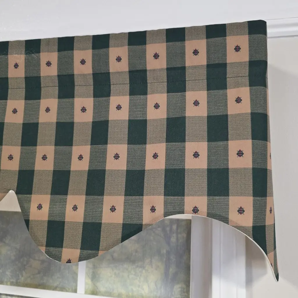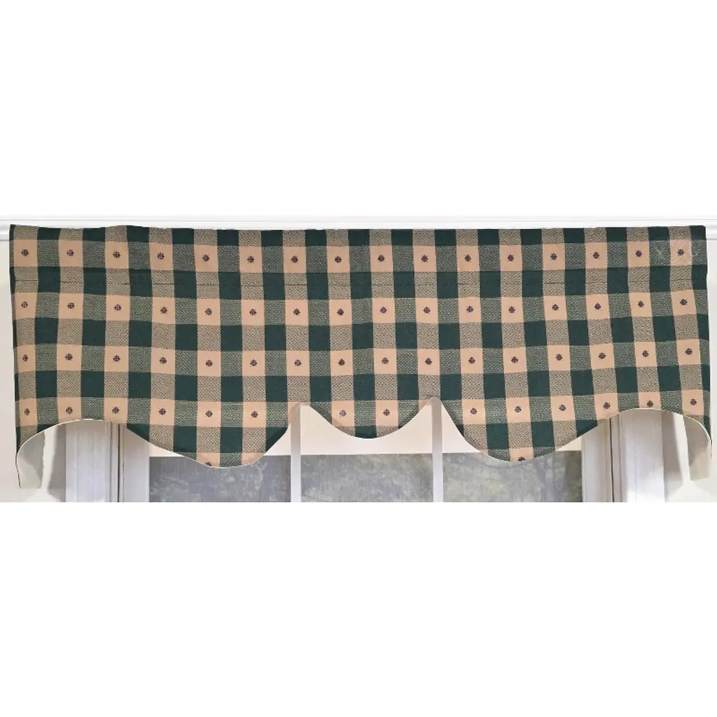 Refresh your space with the distinctive look of the RLF Home Collette Squares Shaped Rod Pocket Valance, proudly made in the USA from durable 100% polyester decorator-quality fabric. Fully lined for added structure with a premium backing marked “Lining Content Ivory – 70% Polyester, 30% Cotton,” this shaped valance delivers a high-end finish ideal for elevating kitchens, living rooms, or dining areas. RLF combines remarkable craftsmanship with unique domestic and imported fabrics to offer fast delivery and boutique-style design at home. Sized to fit windows up to 48" wide, it can be doubled for wider spans and installs effortlessly using a 2-1/2" continental rod, regular 3/4" curtain rod, tension rod, or decorative pole. Spot clean only to preserve the crisp tailored lines, timeless green color, and sophisticated pattern that create a custom decorator look while reflecting the exceptional quality RLF Home is celebrated for.