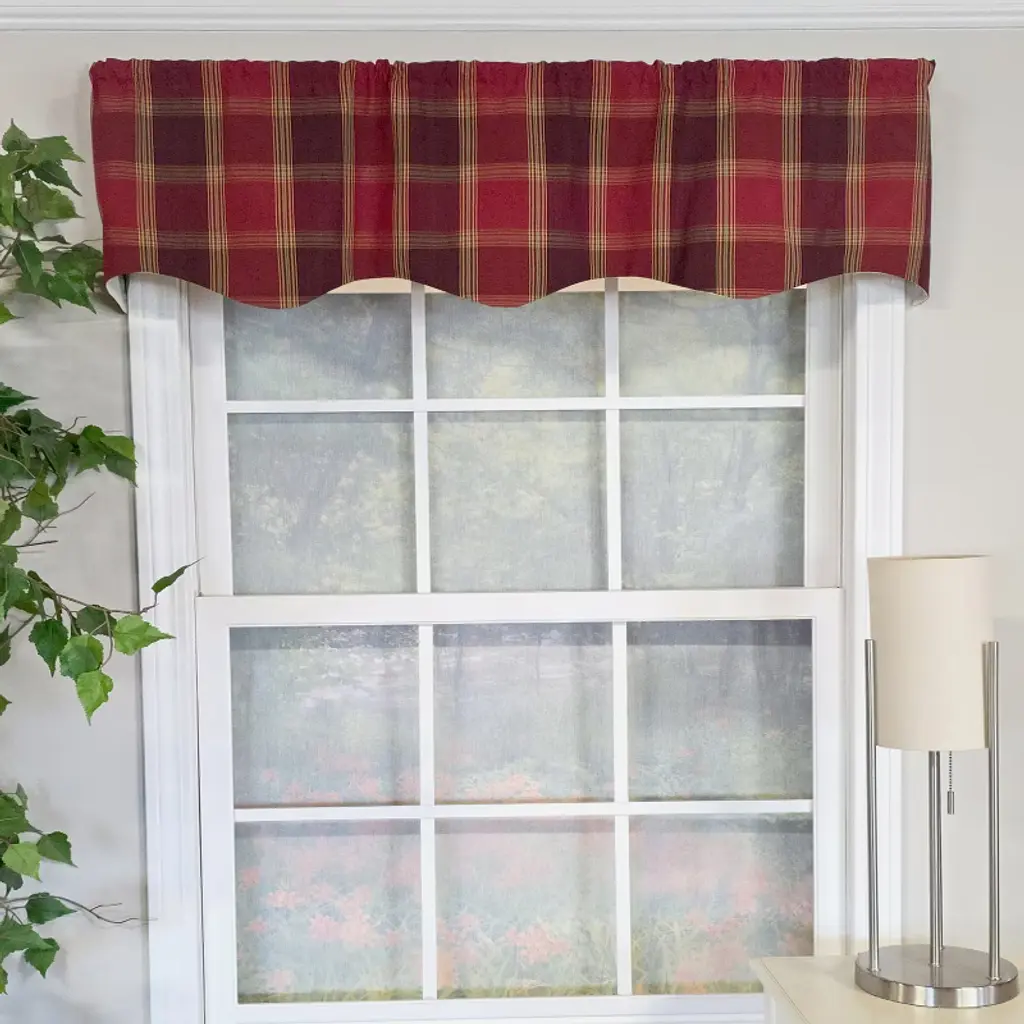 Add luxury to your window with the RLF Home Duncaster Shaped Rod Pocket Valance, crafted in the USA from rich 100% polyester decorator-quality fabric. Fully lined with a signature ivory backing noted as “Lining Content Ivory – 70% Polyester, 30% Cotton,” this elegant burgundy valance delivers a sculpted, high-end finish reminiscent of custom workrooms. Known for unique domestic and imported fabrics, RLF combines timeless style with fast delivery and exquisite workmanship. Designed to fit windows up to 54" wide, it can be used in multiples to span wider spaces and installs easily on a regular 3/4" curtain rod or tension rod. Ideal for dining rooms, kitchens, or master suites, this spot-clean-only valance adds warmth, depth of color, and tailored sophistication while highlighting RLF Home’s commitment to superior American-made window dressing.