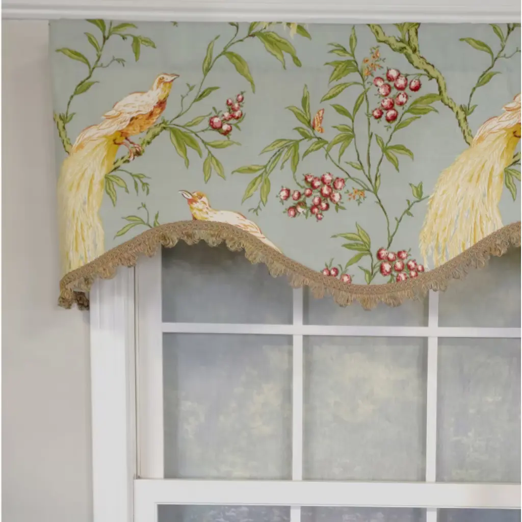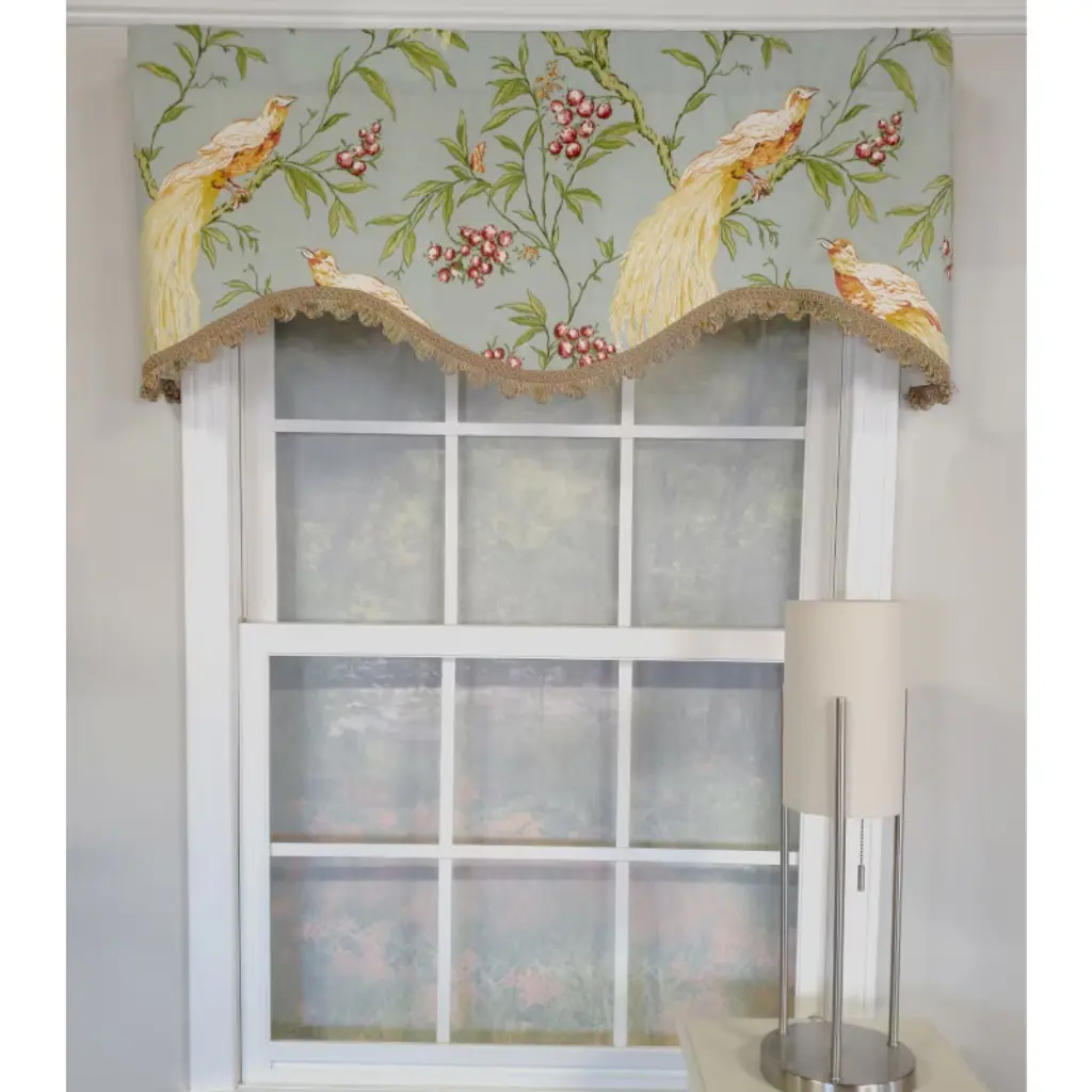 Rlf Home 3" Rod Pocket High Quality Fabric Long Tail Cornice Valance With Scalloped Trim For Windows 50" X 17" Sky