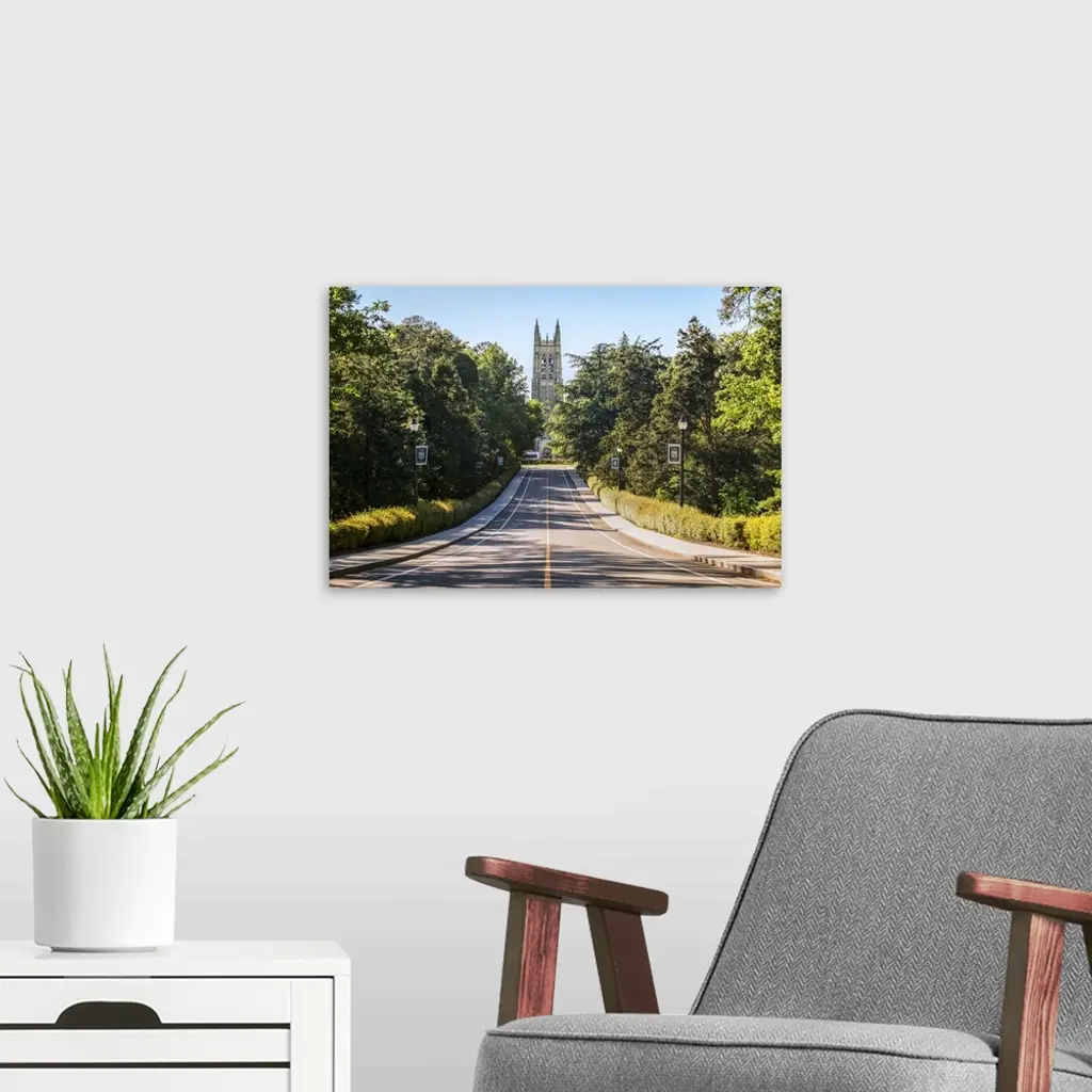 Road leading to the steeple of Duke Chapel, Duke University, Durham, North Carolina.