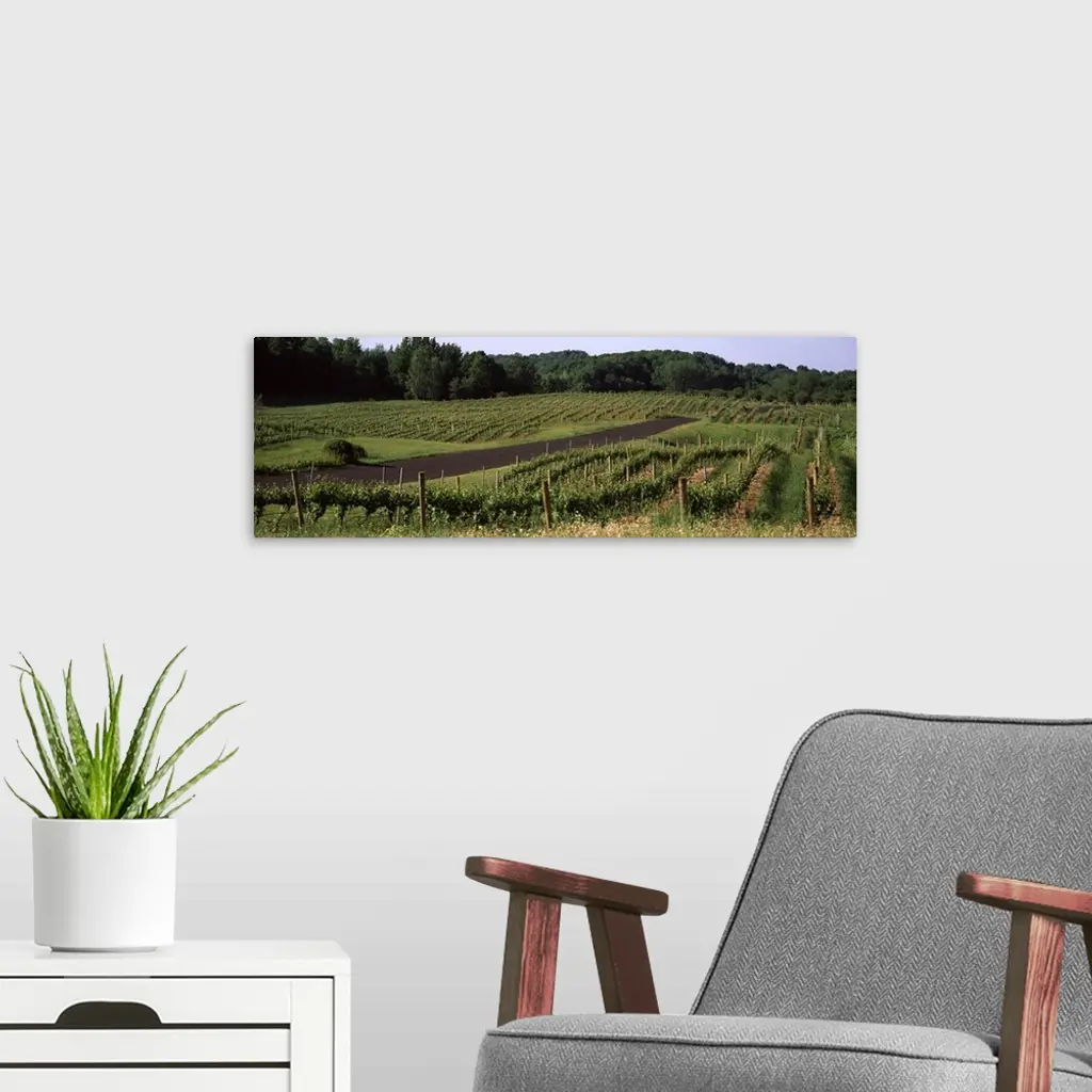 Road passing through vineyards, near Traverse City, Grand Traverse County, Michigan, wall art for home and office decor. Discover canvas art prints, photos, mural, big canvas art and framed wall art in GreatBigCanvas.com's varied collections.