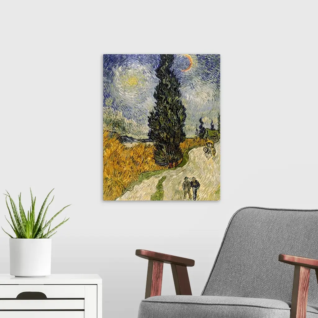 BAL3752 Road with Cypresses, 1890 (oil on canvas) by Gogh, Vincent van (1853-90); 92x73 cm; Rijksmuseum Kroller-Muller, Otterlo, Netherlands; Dutch, out of copyright
