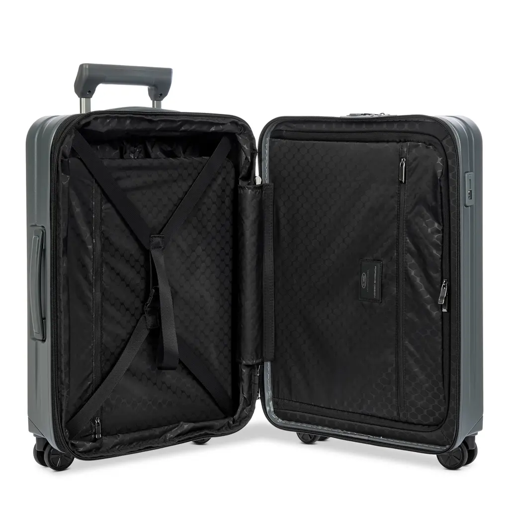 Ultra-light and inspired by the colors of the Porsche cars: the Roadster Hardcase collection. The polycarbonate luggage series developed by the Studio F.A. Porsche is the perfect fusion of form, function and design. The spacious Porsche Design Roadster Hardcase amazes with lightweight and its dynamic monochrome look with Porsche Signature details. Ball bearing, smooth-rolling wheels and a multi-step, ergonomic handle provide for the perfect performance. Through the rounded edges of the handle, bags can be easily attached and removed. The divided interior is also flexible - and can be expanded at any time. An ultra-secure two-way zipper and a TSA lock protect your luggage. The Roadster Hardcase Collection introduces a new level of lightweight, combined with a bold new design. When it comes to travel, lightness and capacity are essential. The front pattern and the wheels are inspired by the Porsche classic design: indicating performance and vigor. Crafted from Polycarbonate, the collection combines flexibility and durability, offering two distinct finishes: matte or glossy, in colors inspired by the automotive world. The design is accentuated by the Porsche Design logo, while the interior features a Porsche Design hexagon pattern. This collection takes the commitment of high performance to an entirely new level.