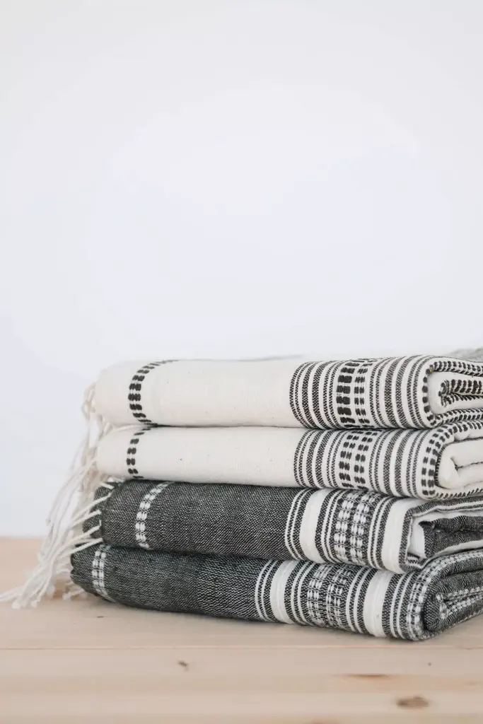 Handwoven in Ethiopia using time-honored weaving traditions and AZO-free dyes. All of the dyeing is done in small batches at the workshop as the artisans work to rekindle the tradition of natural dye in Ethiopia. These towels are perfect in the bathroom and kitchen. Absorbent and quick drying cotton.Roan Iris works with artisans around the globe to bring their craft and age-old techniques into the modern marketplace. This work brings fair wages and ethical working conditions into rural communities where employment opportunity is minimal.* Handwoven with 100% cotton * Machine wash cool, dry on low* Sold individually* Imported#### *Dimensions** Large: approximately 37" wide, 72" longPlease note handmade products will have slight variations, this is a natural occurrence in handcrafted goods.