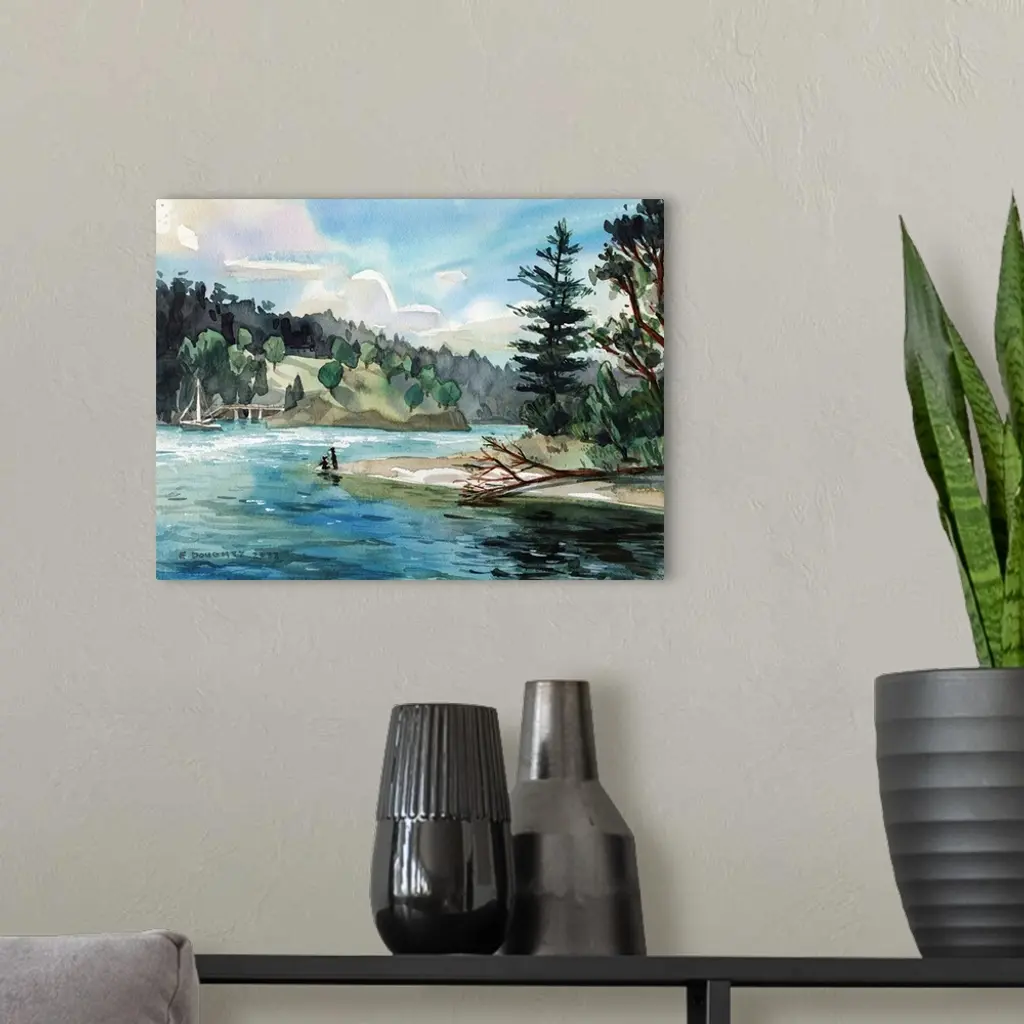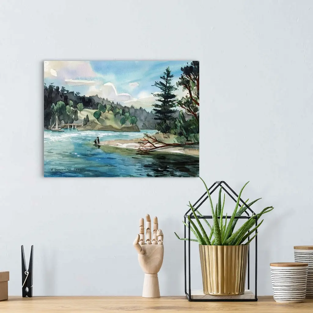 Lush evergreens populate the shores of Roche Harbor in the San Juan Islands, Washington.