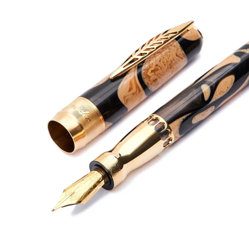 Inspired by natural elegance, this rollerball pen features a striking marbled design in beige and black, elevated by radiant gold trims. Its rollerball tip ensures smooth, effortless writing with excellent control, making it ideal for both quick notes and long writing sessions. Perfect as a refined accessory for creatives and professionals alike, this pen combines visual charm with practical precision.