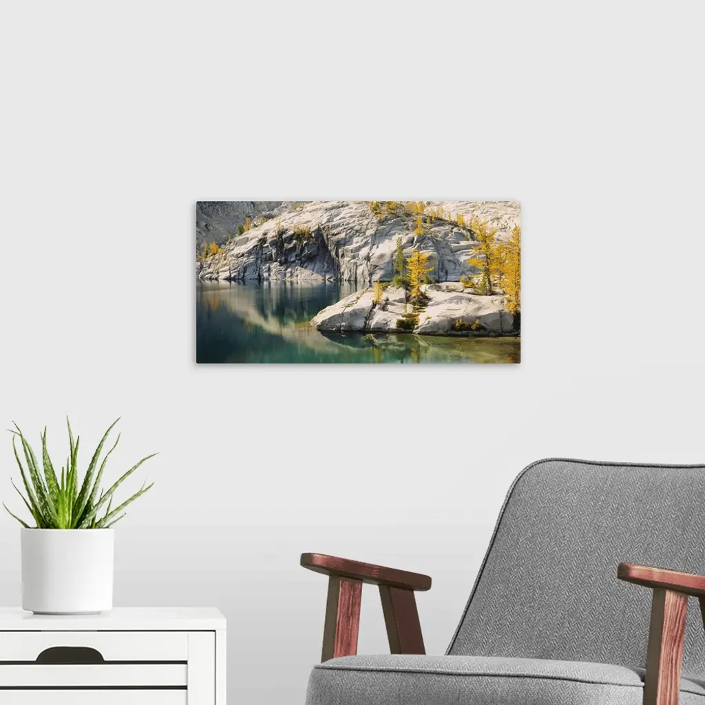 Rock formations along a lake, Alpine Lake, Washington State wall art for home and office decor. Discover canvas art prints, photos, mural, big canvas art and framed wall art in GreatBigCanvas.com's varied collections.