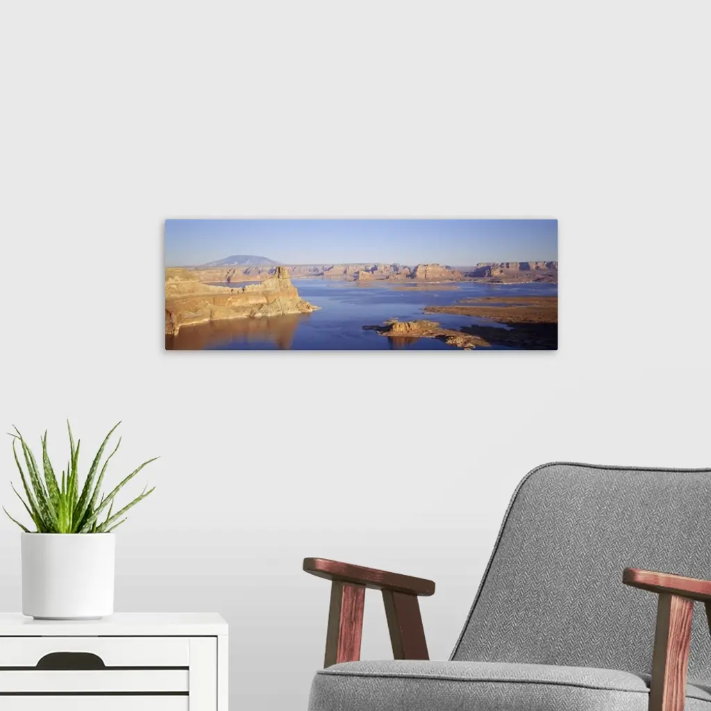 Rock Formations At A Lake, Gunsight Butte, Lake Powell, Glen Canyon National Recreation Area, Arizona, Utah