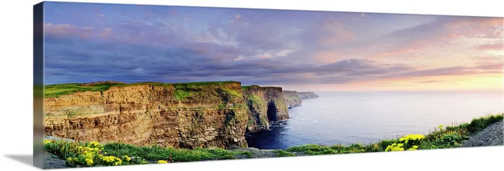 Rock formations at the waterfront, Cliffs Of Moher, The Burren, County Clare, Republic Of Ireland wall art for home and office decor. Discover canvas art prints, photos, mural, big canvas art and framed wall art in GreatBigCanvas.com's varied collections.
