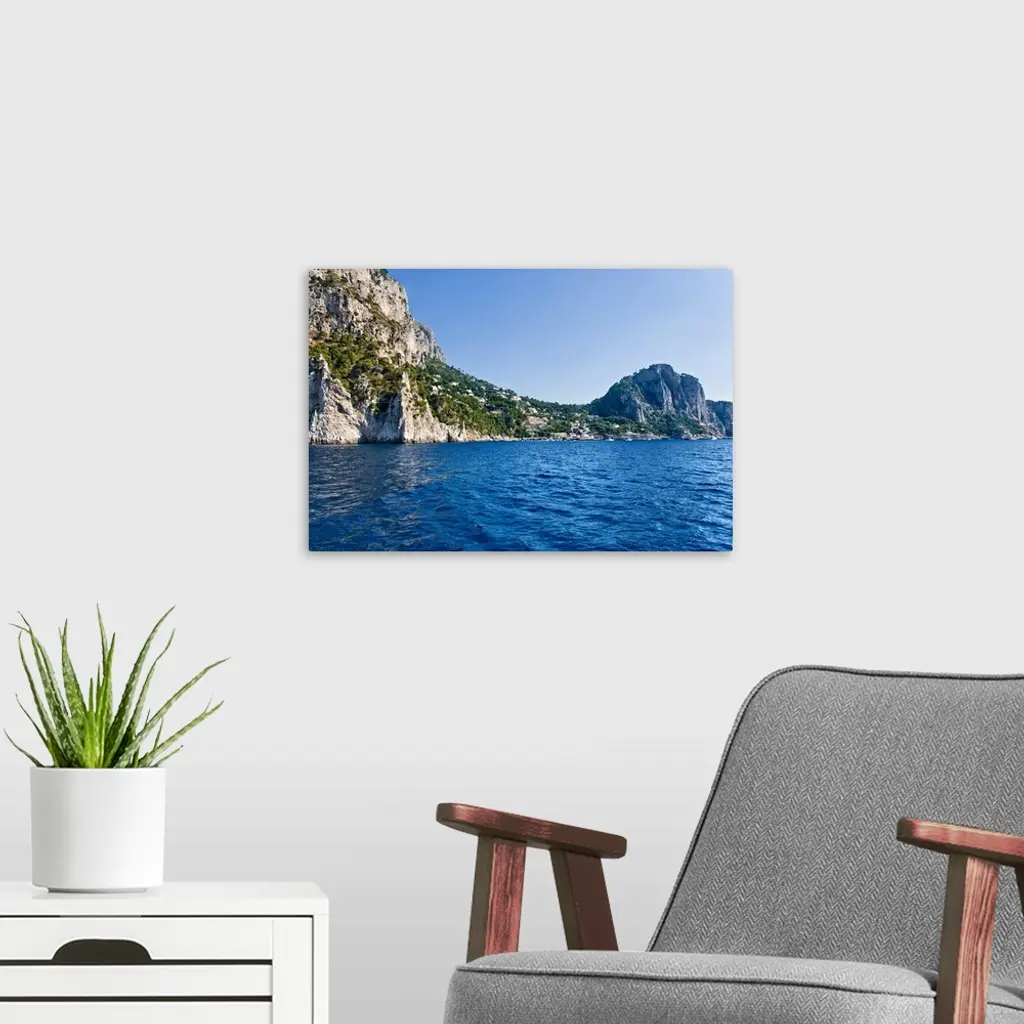Rock formations in the sea Capri Naples Campania Italy wall art for home and office decor. Discover canvas art prints, photos, mural, big canvas art and framed wall art in GreatBigCanvas.com's varied collections.