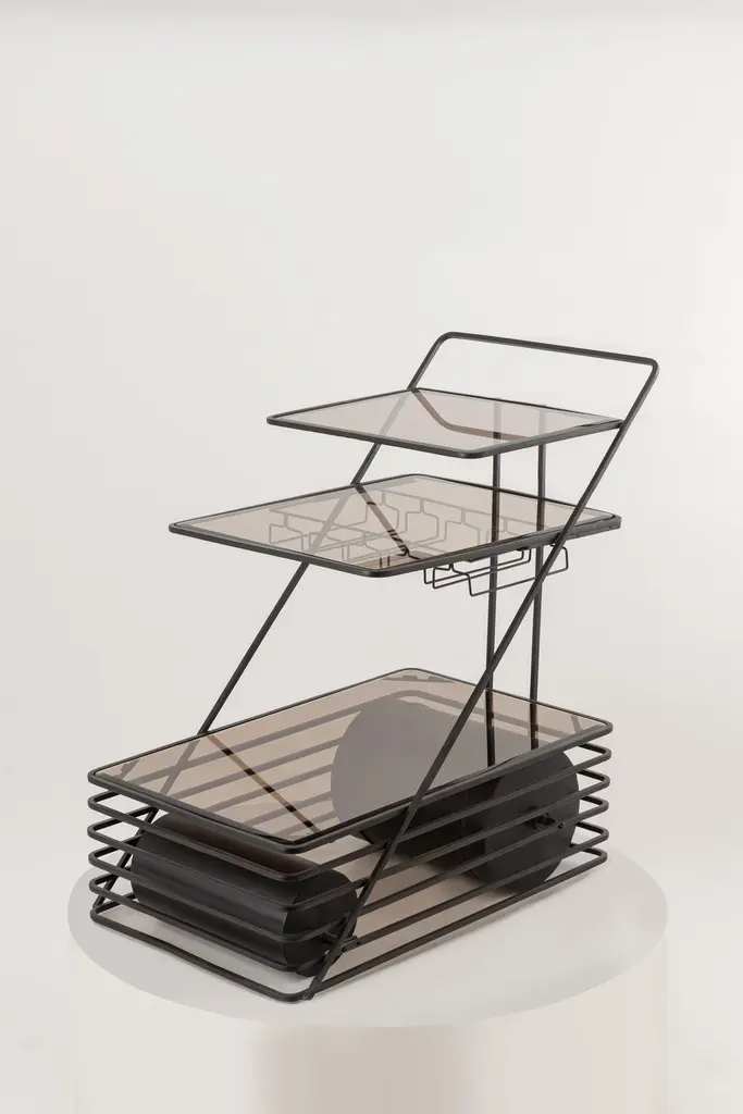 Clear the stage because the Rock ‘n’ Roll Bar Trolley is here! With its swanky wheels inspired by industrial road rollers, no one twists and turns to your beats quite like this trolley does.A multipurpose masterpiece with three reflective glass tiers (each with their own function!) and a stable stance, it is sure to keep the conversation from falling flat. The designated bottle rack and hanging wine glass stand keep everything within reach as the bar cart paves the way for your perfect cocktail!So crank up the tunes, roll out your mixology skills, and raise a glass to rockin’ times!