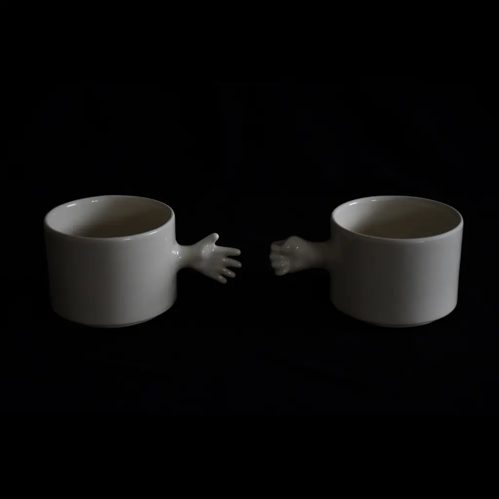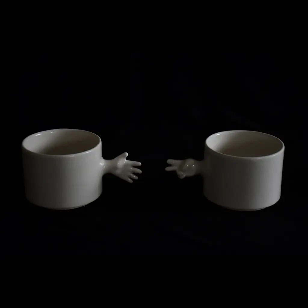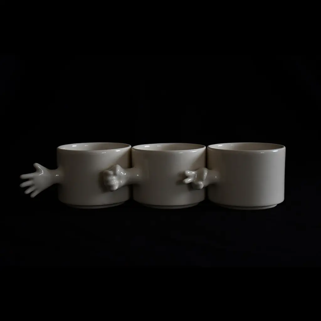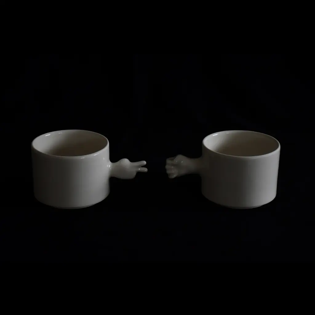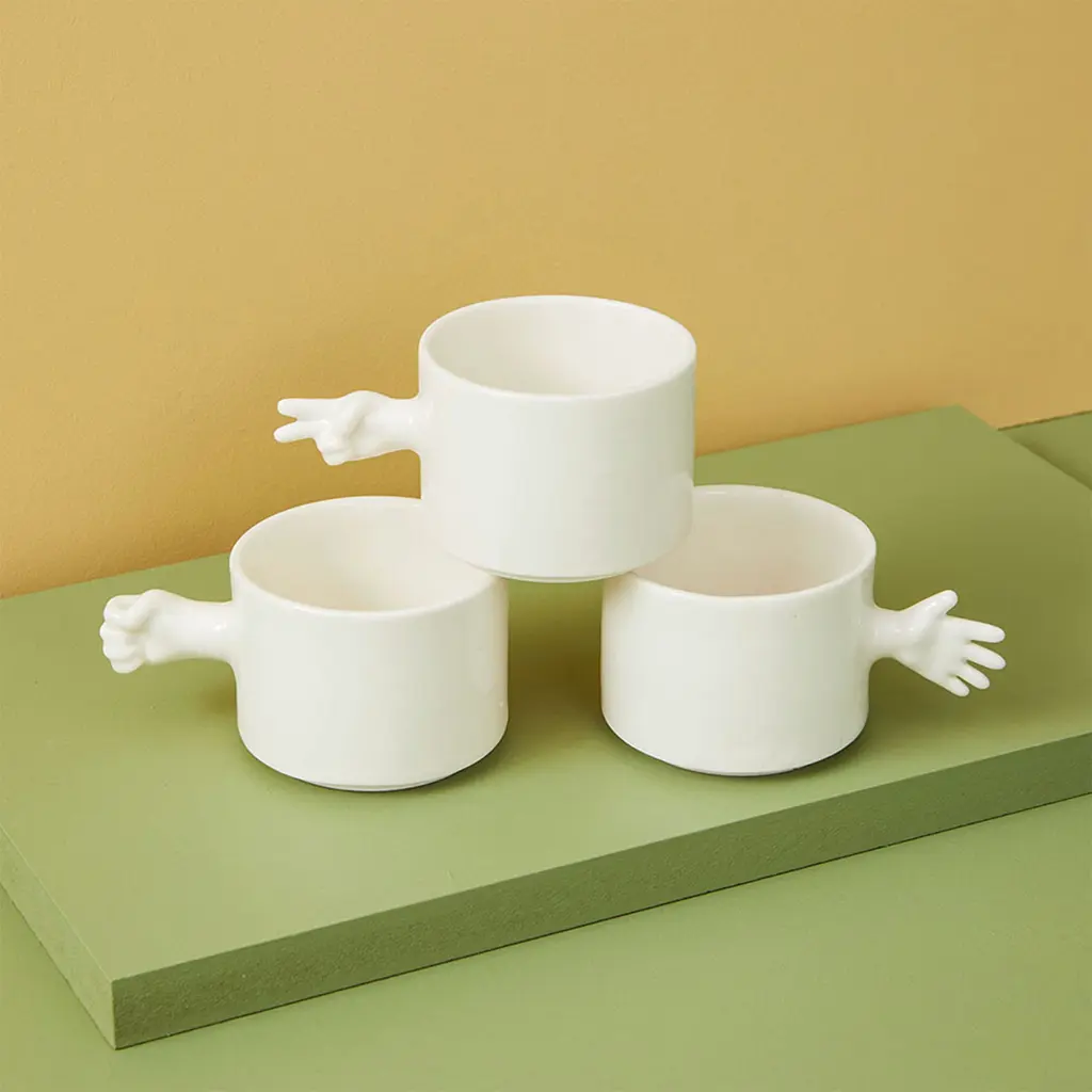 The ‘GESTURE CUPS’ series by 4AM Product Design captures human gestures through porcelain cups, crafted using throwing and slip casting techniques. The collection features a rock-paper-scissors set, with each cup symbolizing a classic gesture, adding interactivity and playfulness.