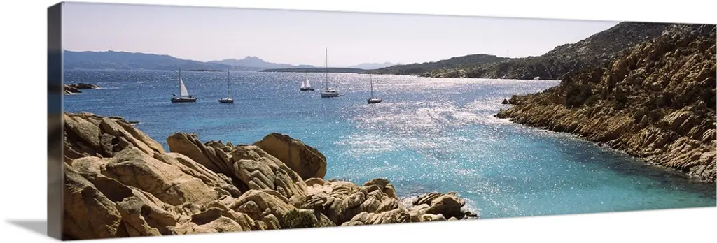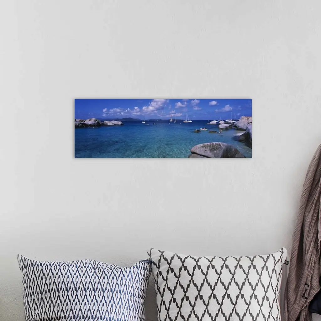 Rocks at the coast with boats in the background, The Baths, Virgin Gorda, British Virgin Islands wall art for home and office decor. Discover canvas art prints, photos, mural, big canvas art and framed wall art in GreatBigCanvas.com's varied collections.