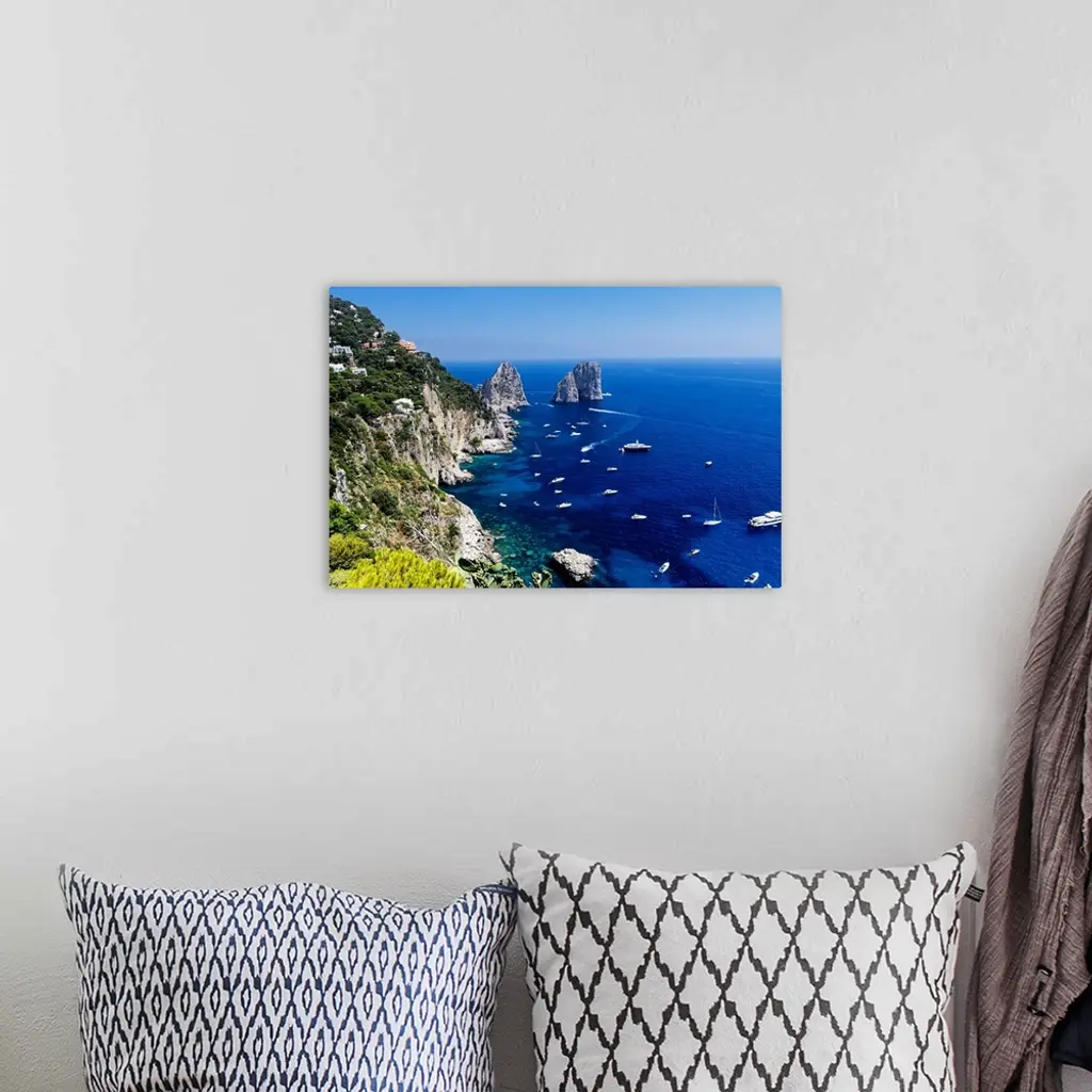 High Angle View of Coastline, Faraglioni Rocks, Capri, Campania, Italy