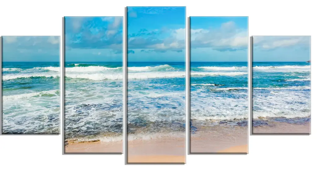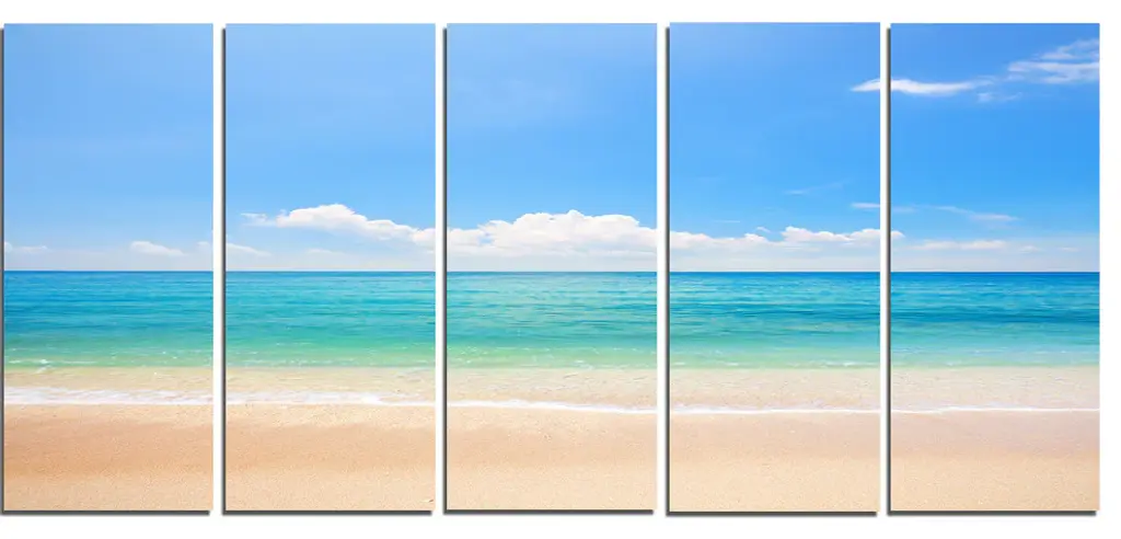 "Rocks On Typical Tropical Beach" Beach Canvas Wall Art, 5 Panels, 60"x32"