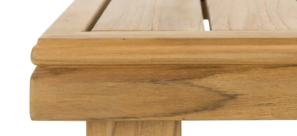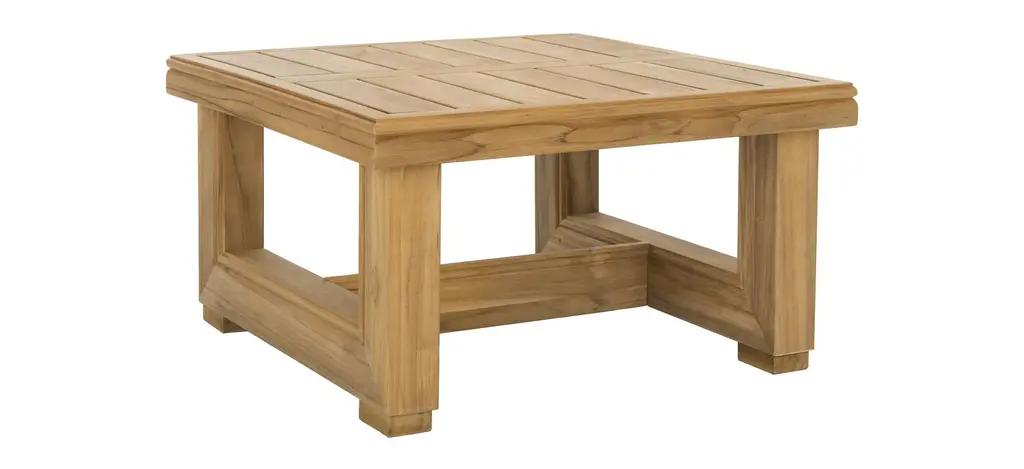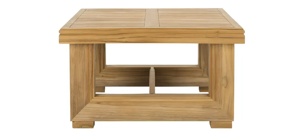 Bring the natural beauty of solid wood to any outdoor living area with the Roger Brazilian teak end table. Finely crafted, its substantial frame, clean lines and cut-out design makes it an investment in gracious living. An ideal spot for evening cocktails.