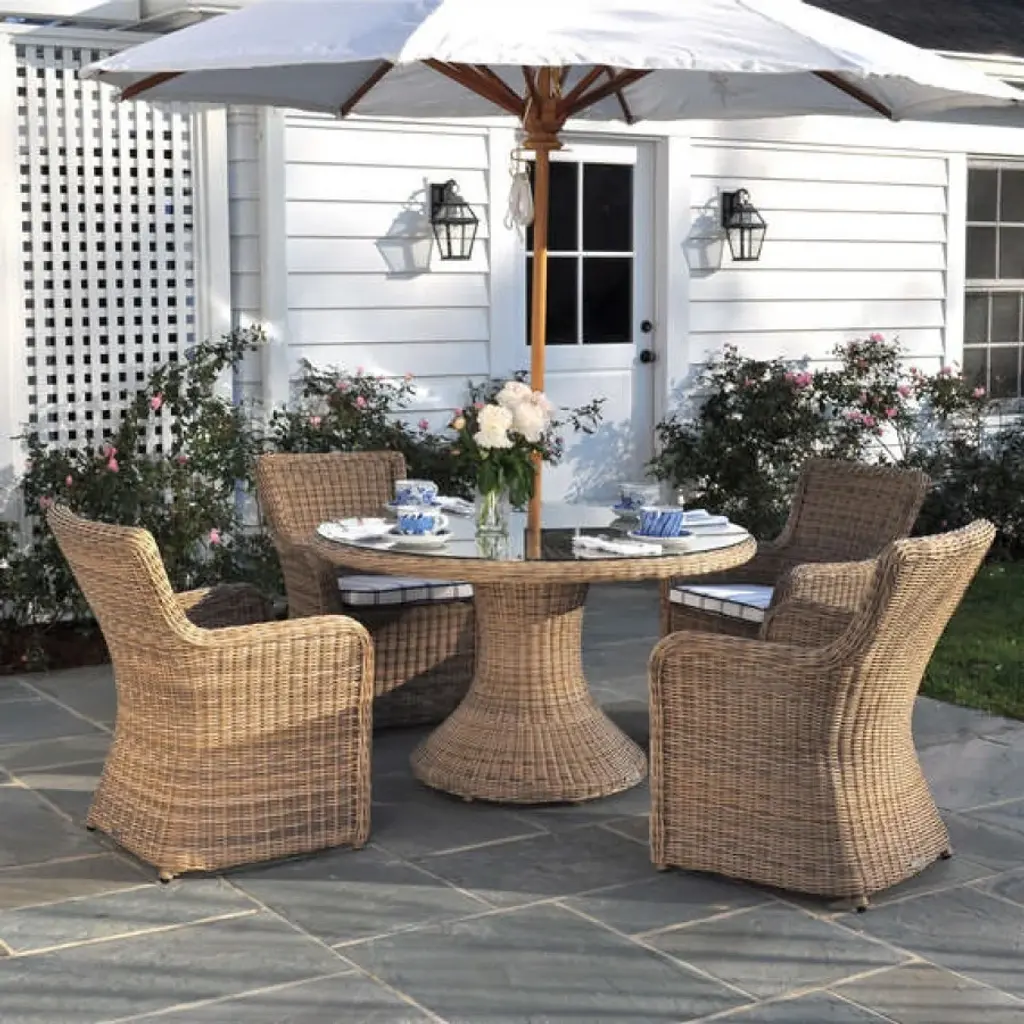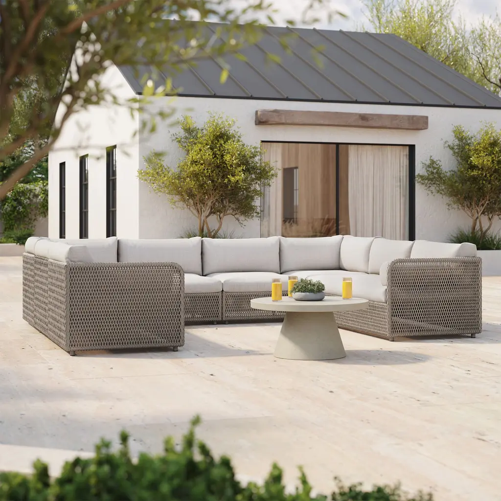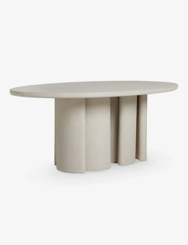 Make al fresco dining a design moment with this sculptural dining table. The artfully arranged legs bring a layered depth to the profile, set off by a textural finish that grounds the oval table with a timeless quality. We love this robust table for anchoring a modern outdoor dining space that feels part of your home's foundation.